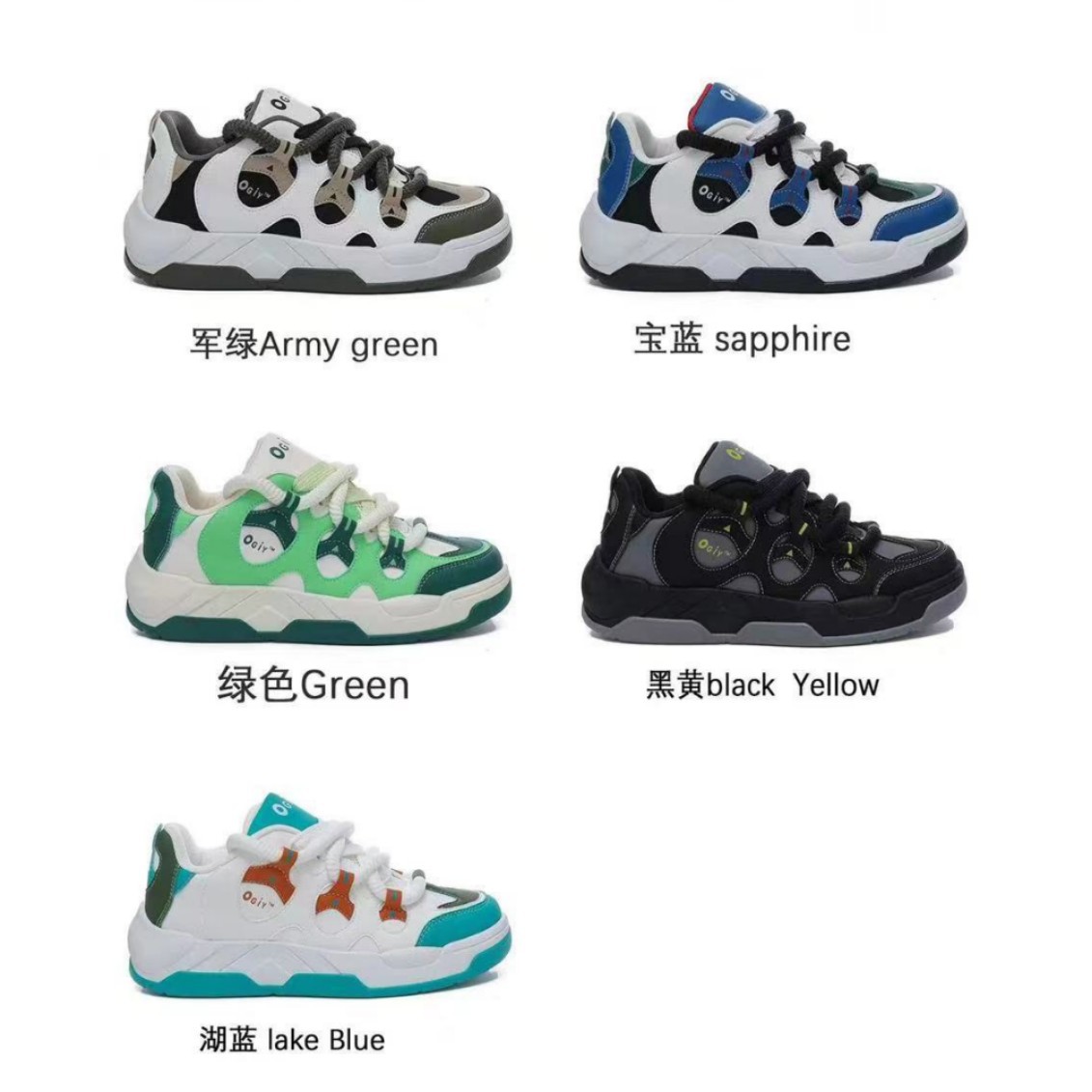 color: black and white, white and blue, army green, sapphire blue, green, black and yellow, lake blue