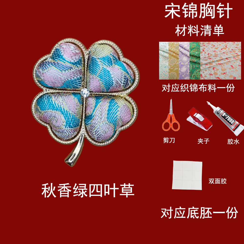 autumn fragrance green four-leaf clover-song dynasty brocade brooch material kit