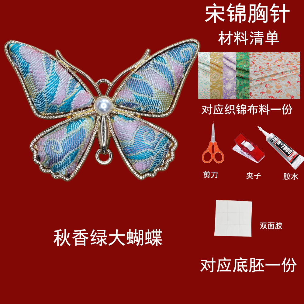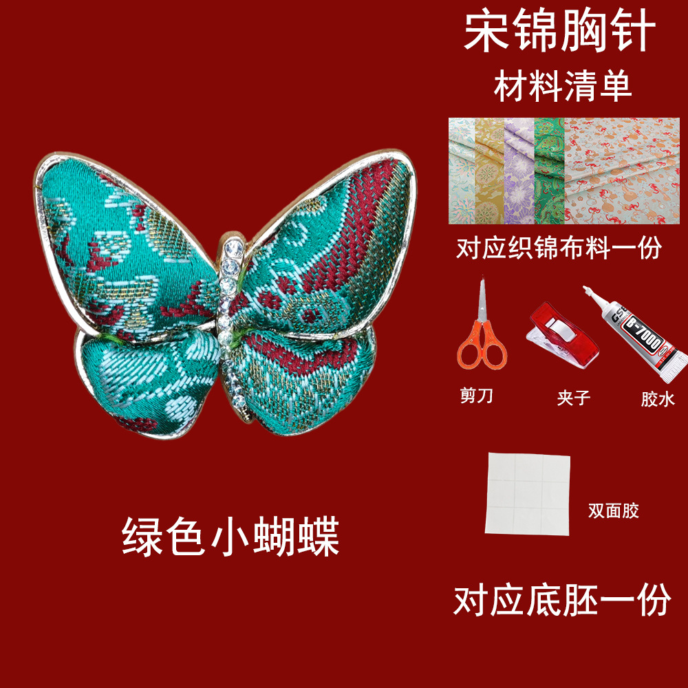 autumn fragrance green flying butterfly-song dynasty brocade brooch material kit