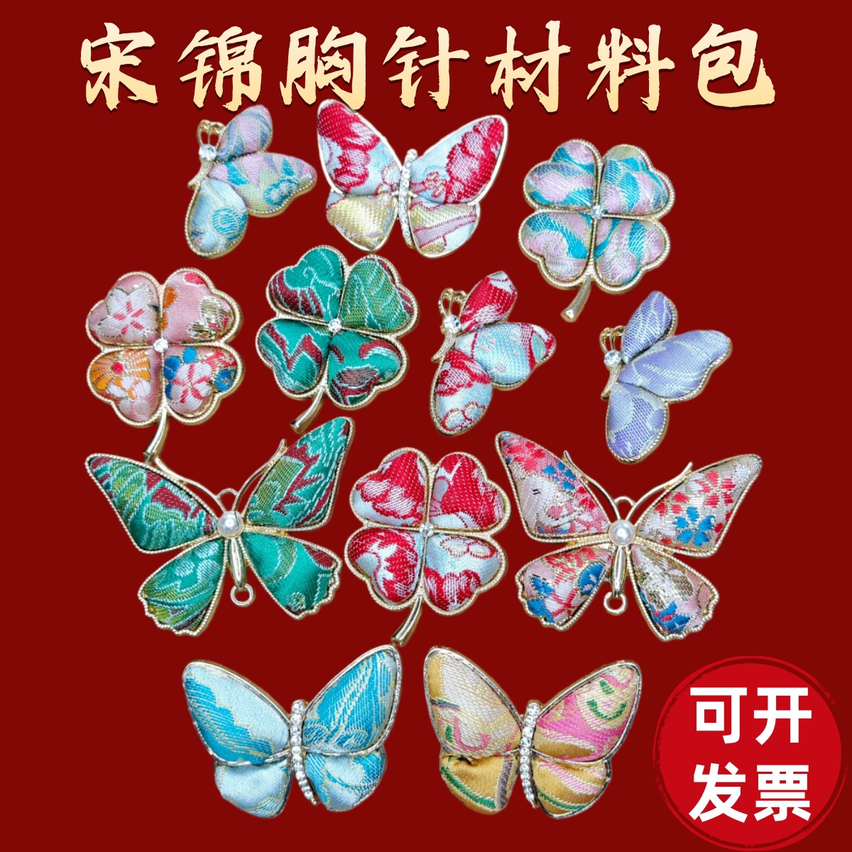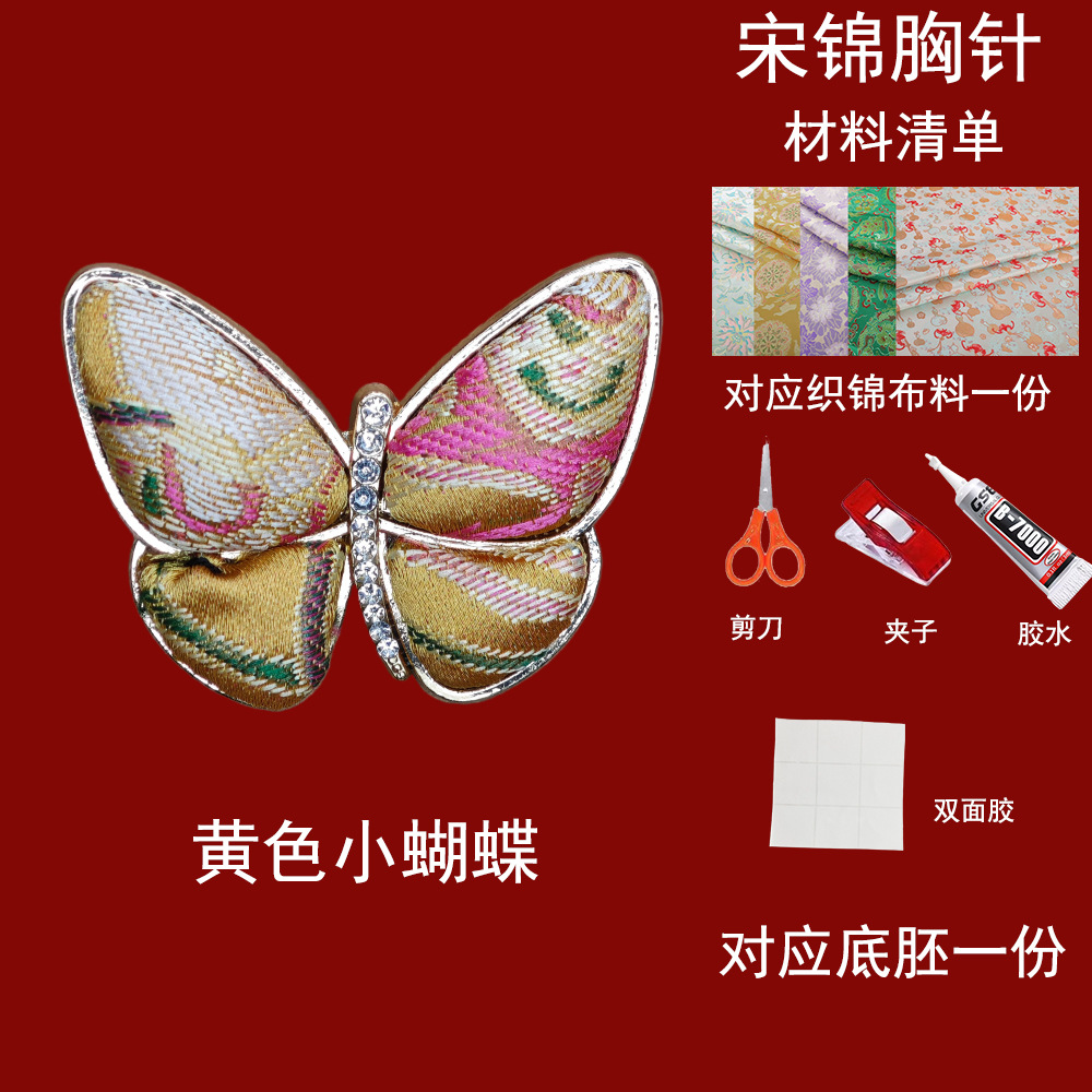 yellow small butterfly-song dynasty brocade brooch material kit
