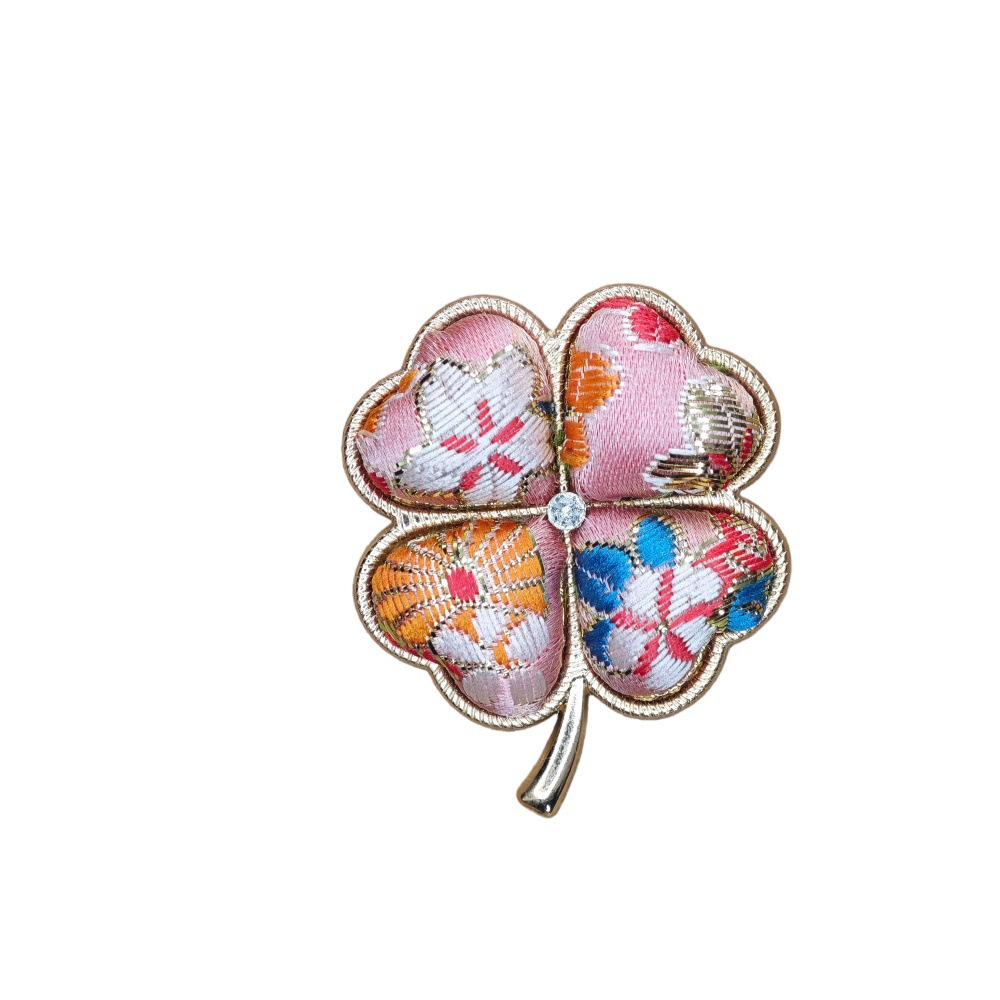 pink four-leaf clover-song dynasty brocade brooch material kit