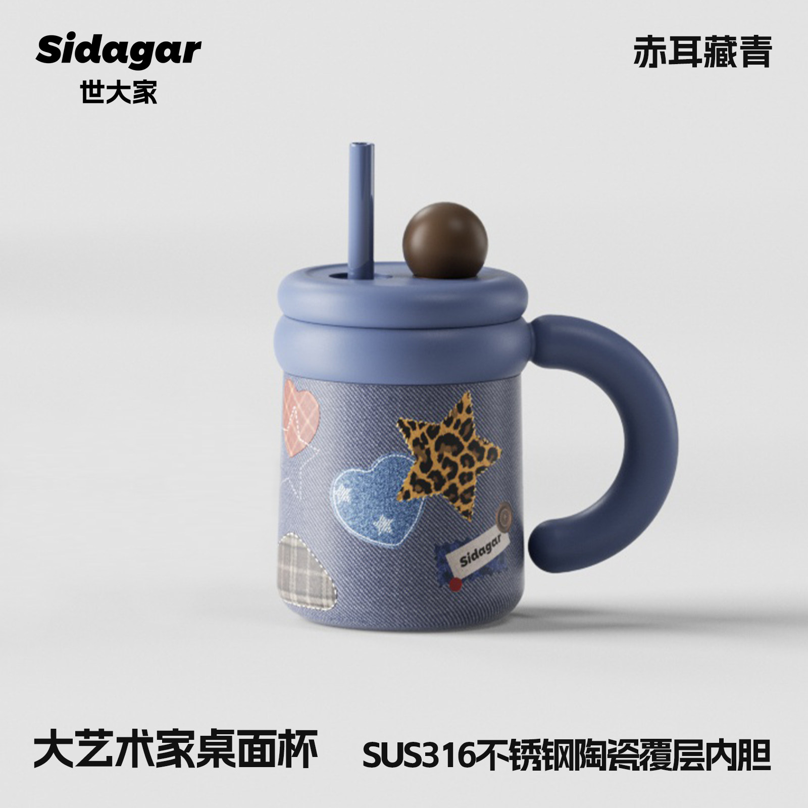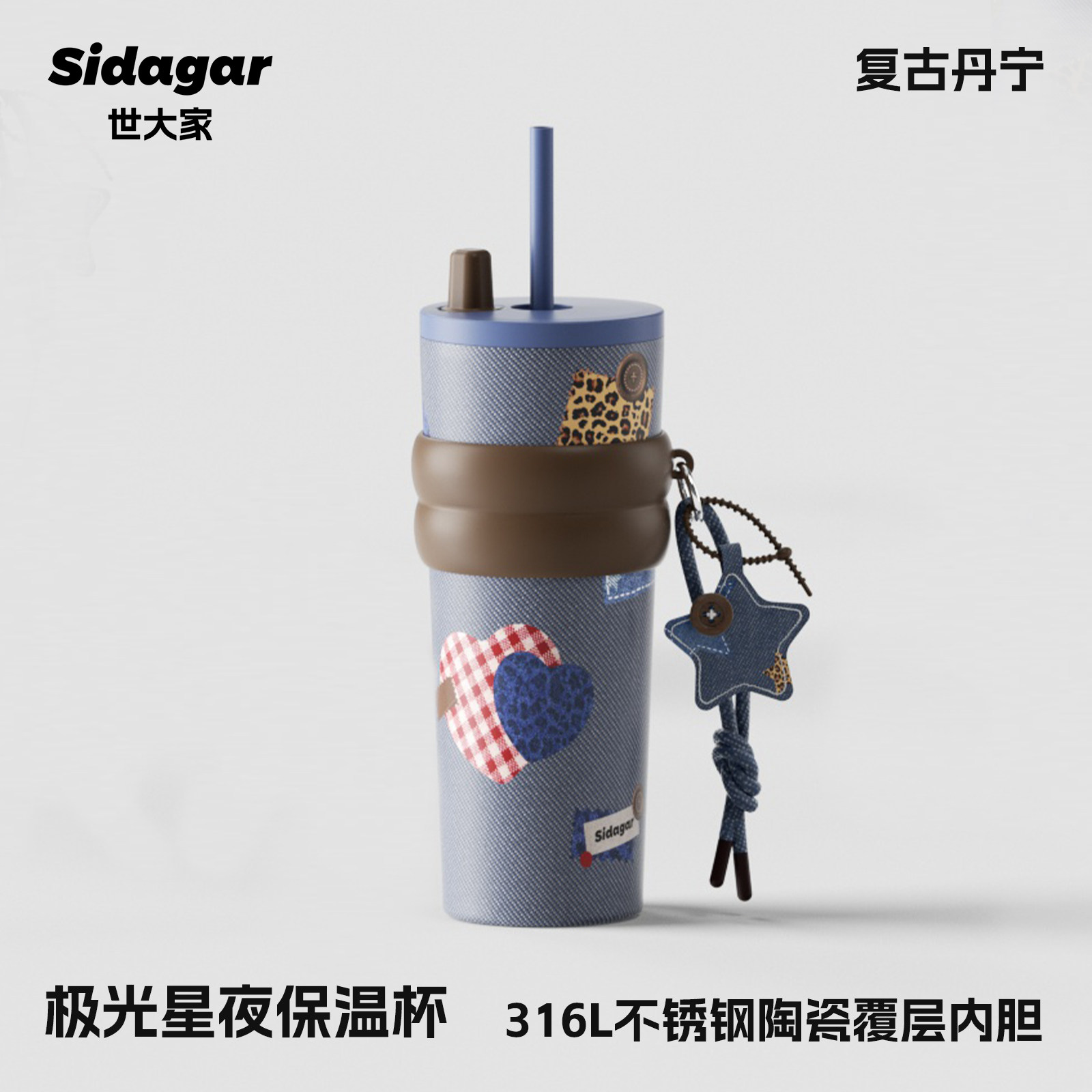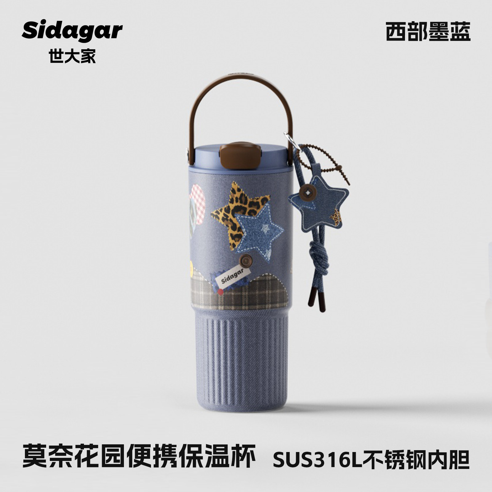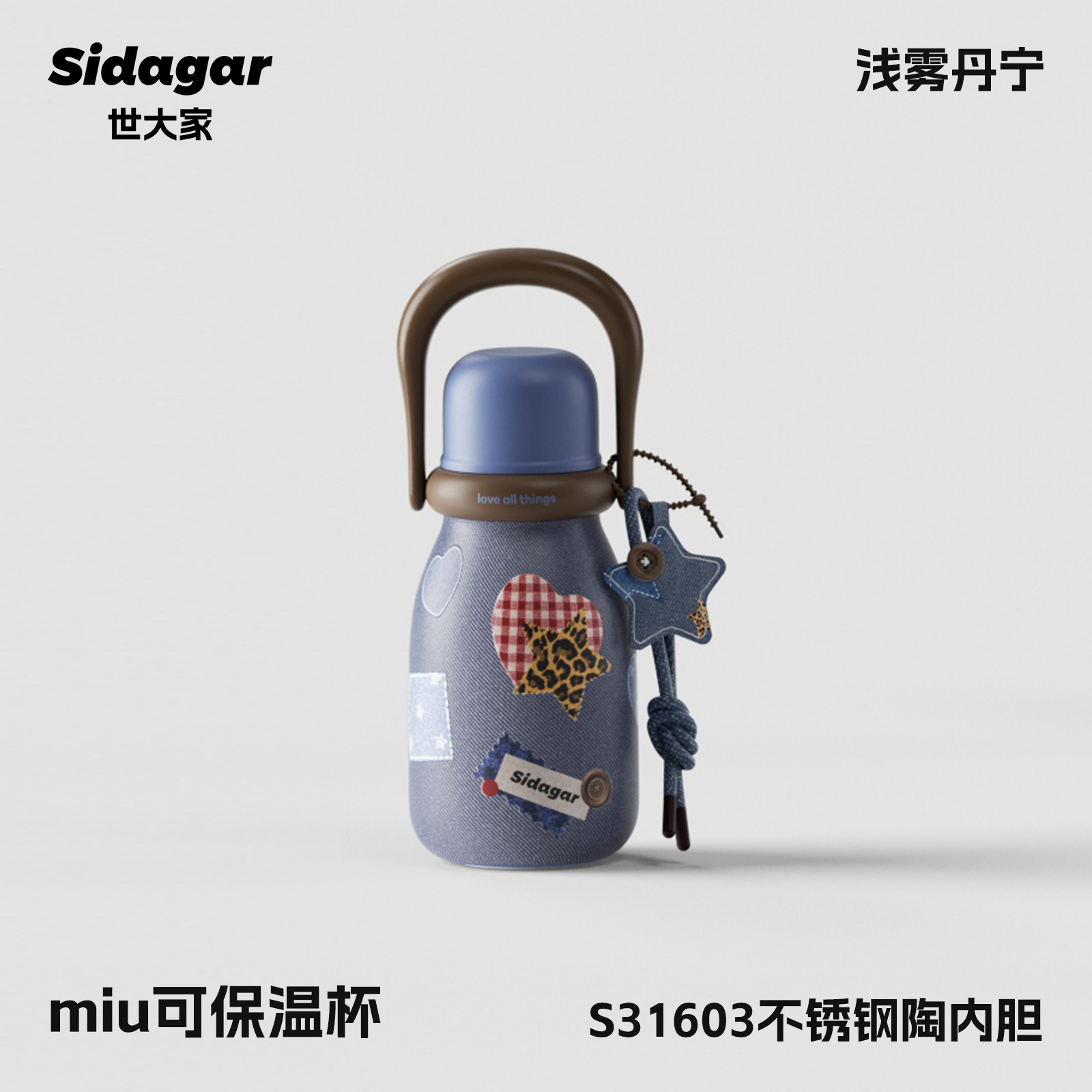 retro denim-710ml [316l cover ceramic inner pot + portable rope holding]]