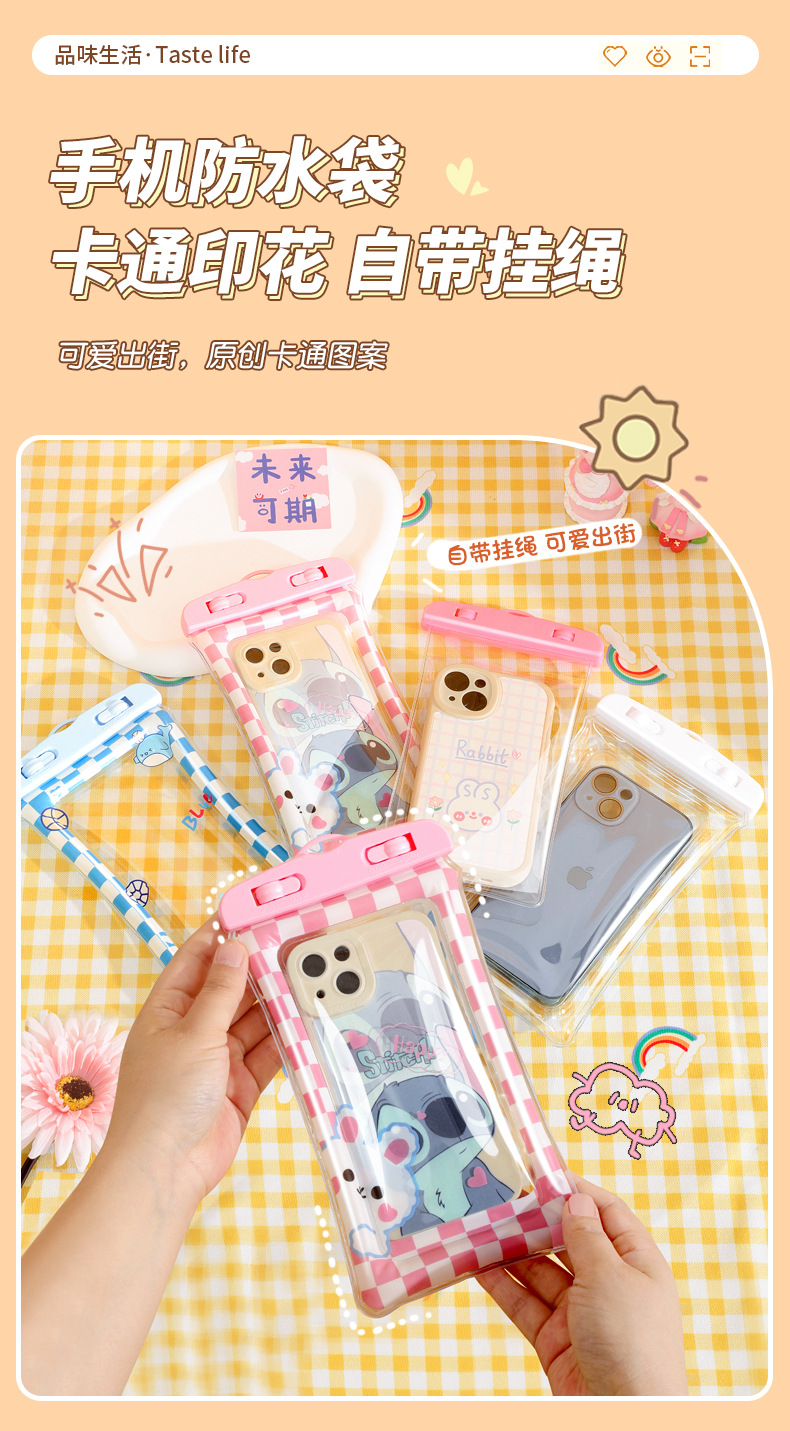 cute cartoon mobile phone waterproof bag touch screen waterproof bag mobile phone touch screen protective cover swimming drifting envelope bag