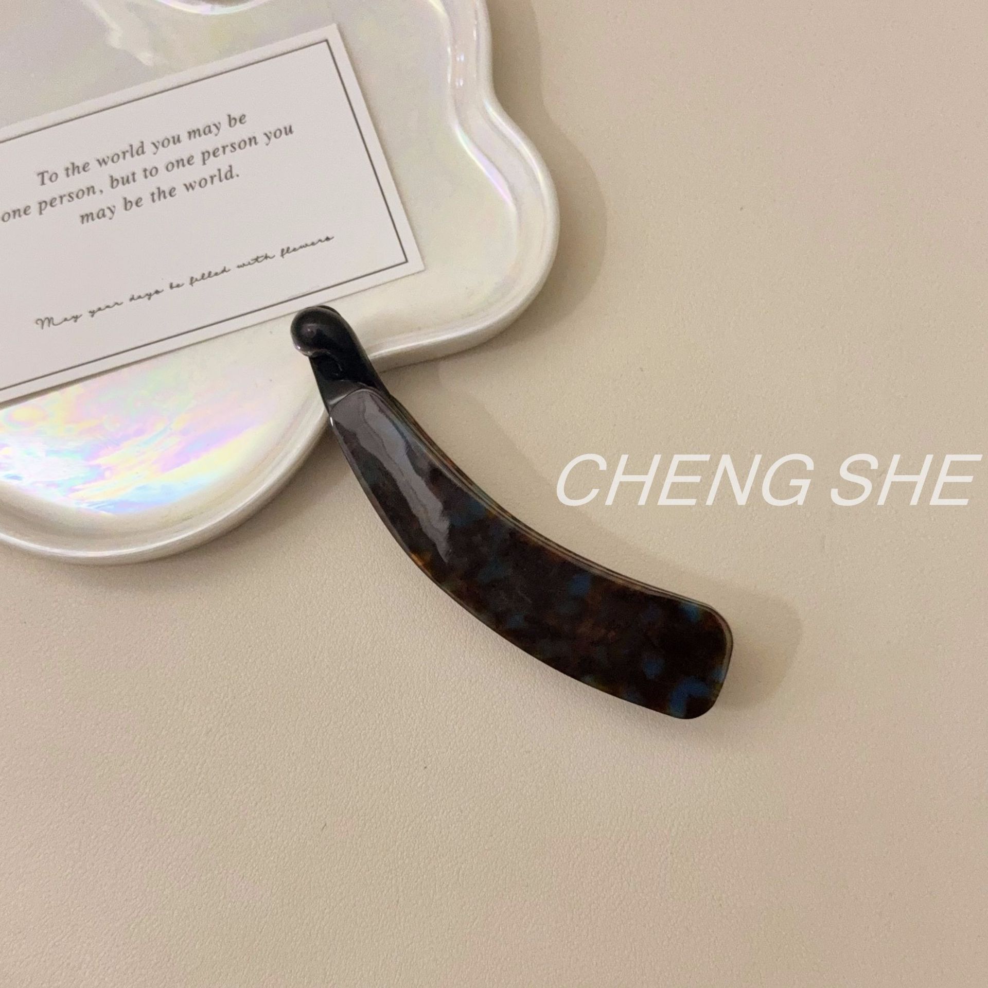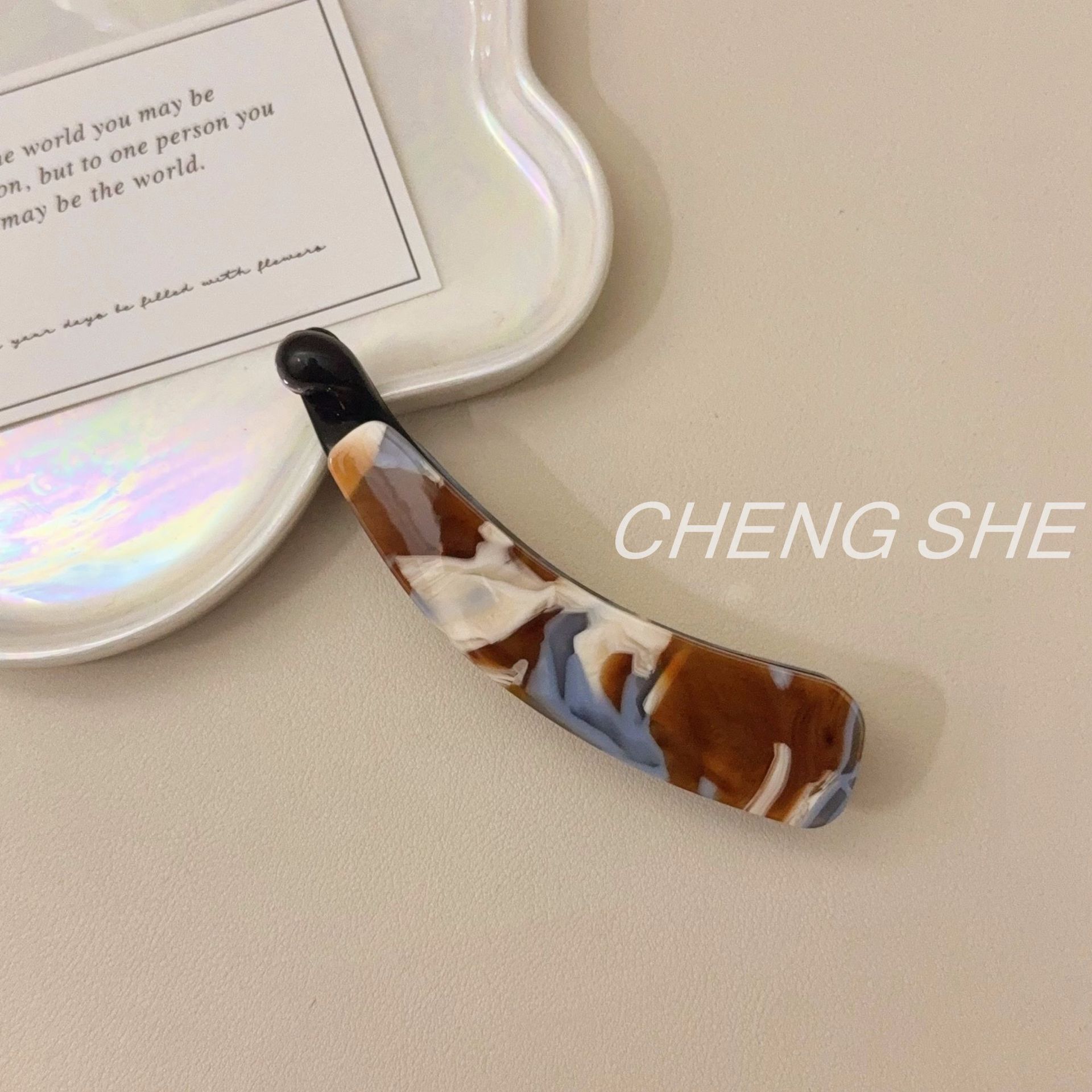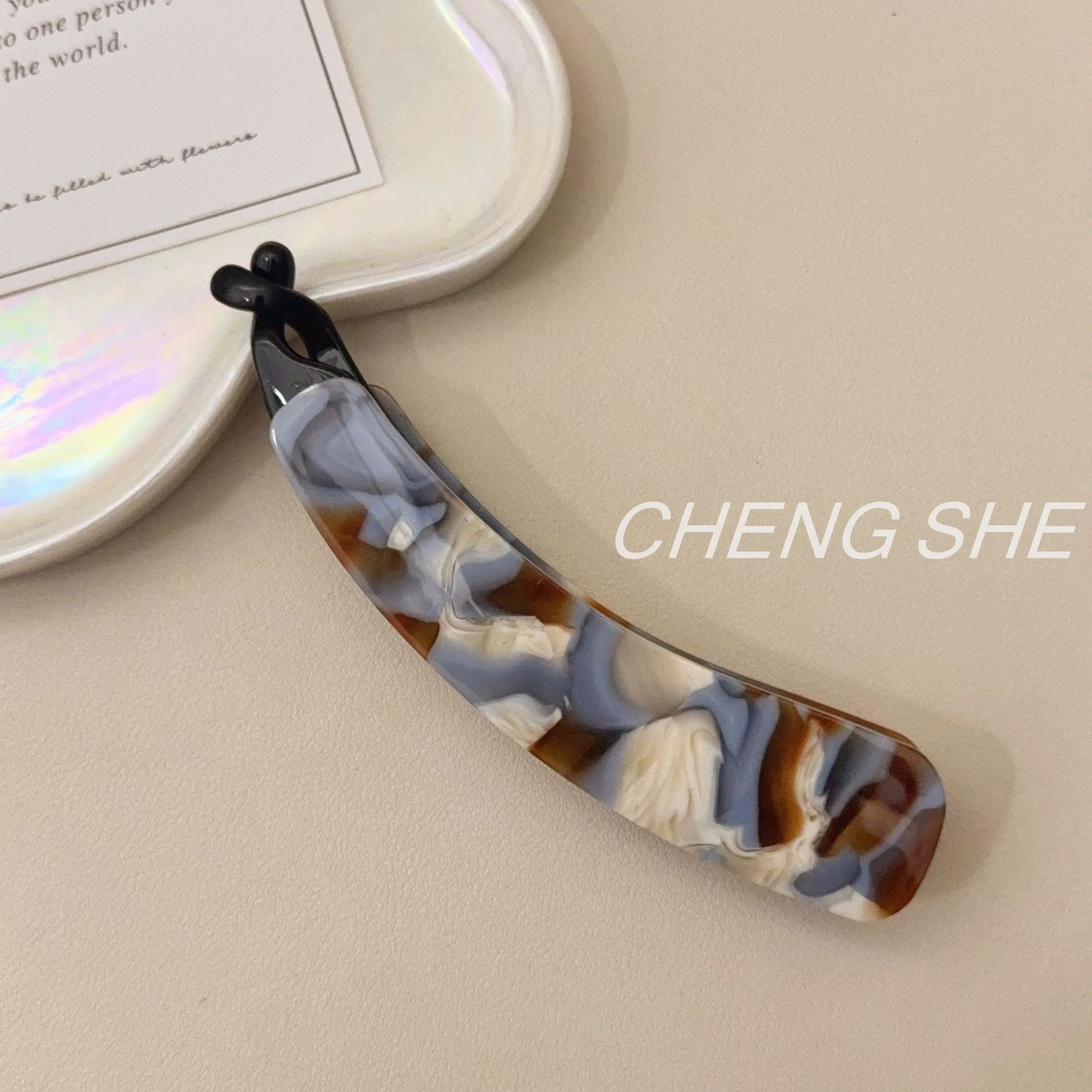 fj839 little chubby acetate small banana clip [misty blue brown]