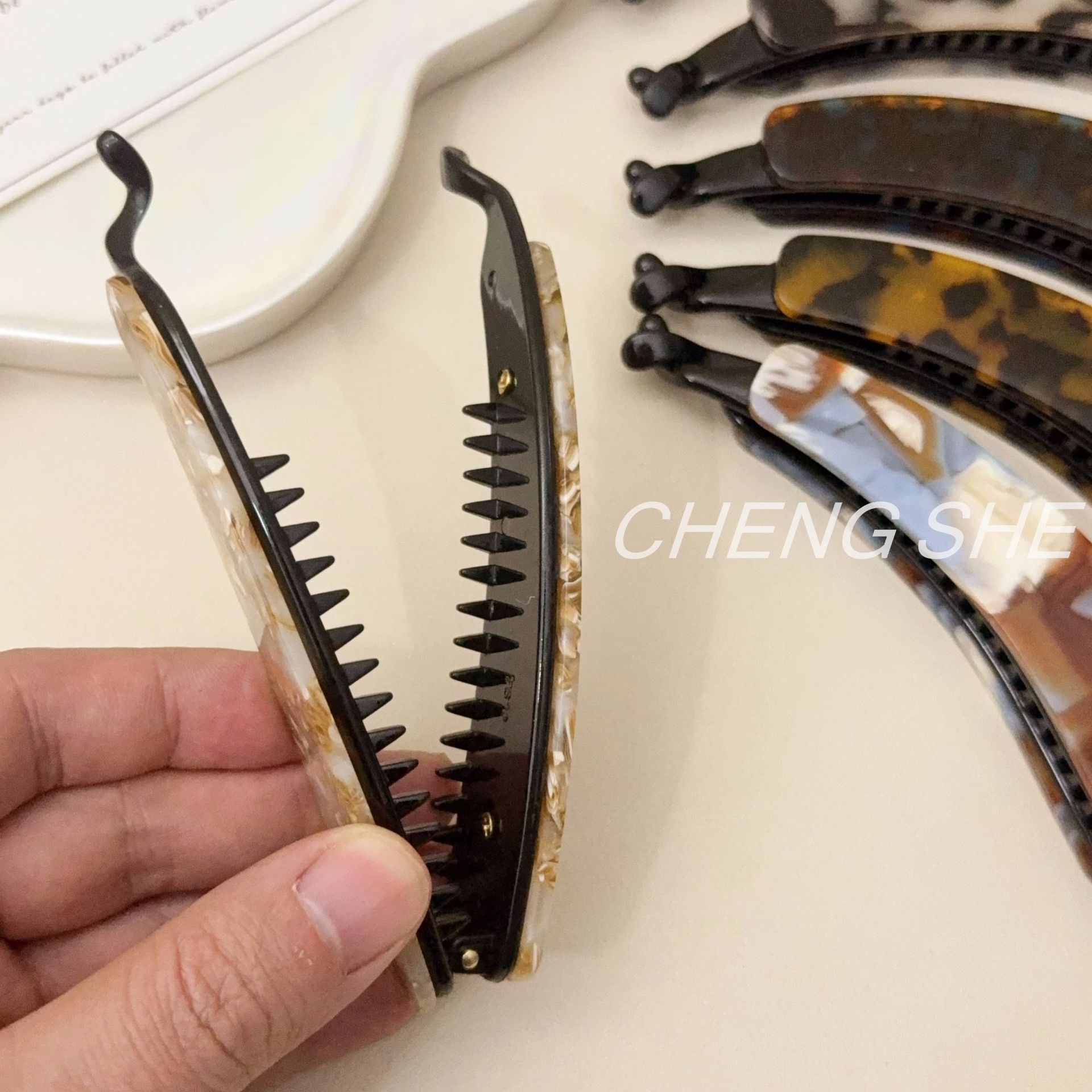 fj839 chubby acetate large banana hair clip [mocha gold]