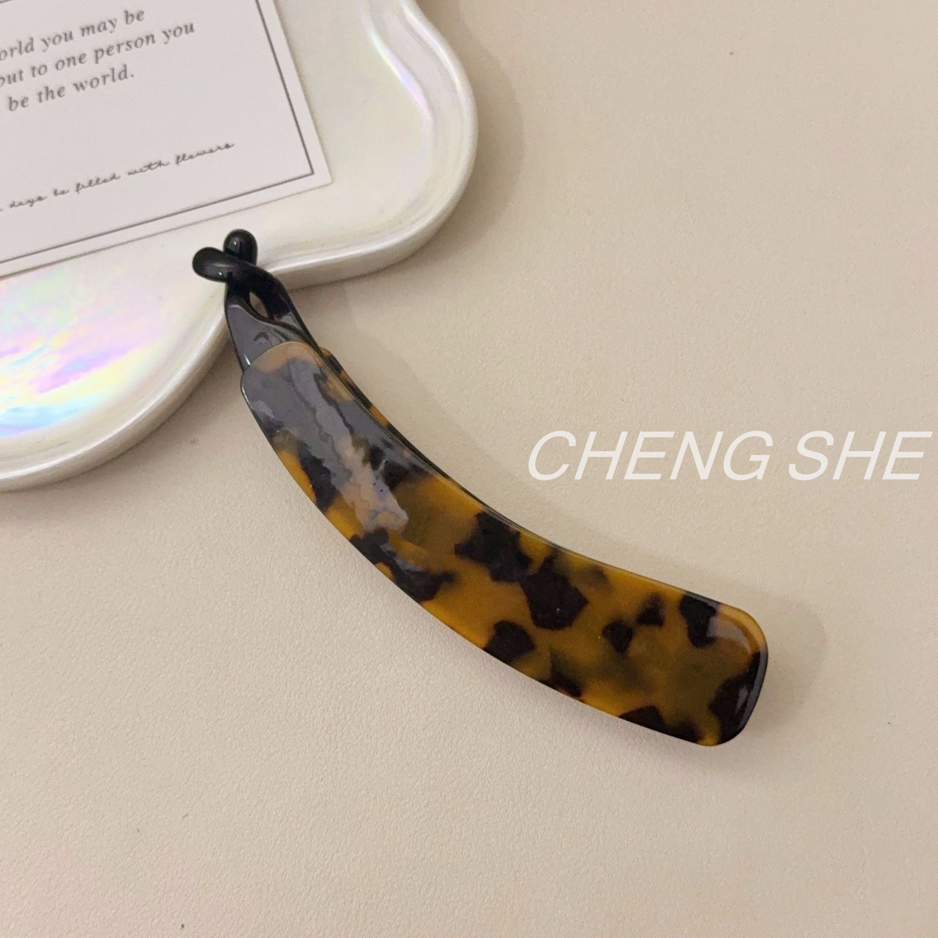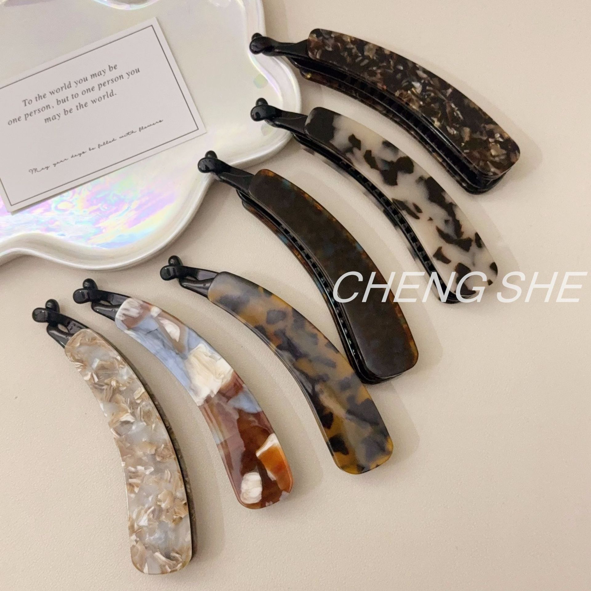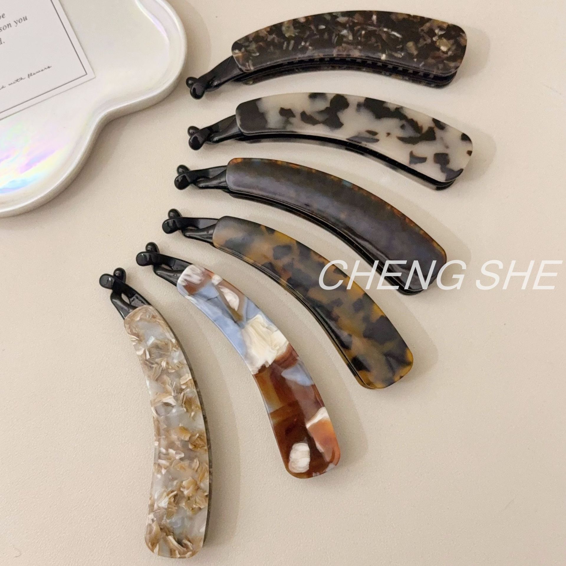 fj839 little chubby acetate small size banana clip [light tortoiseshell]
