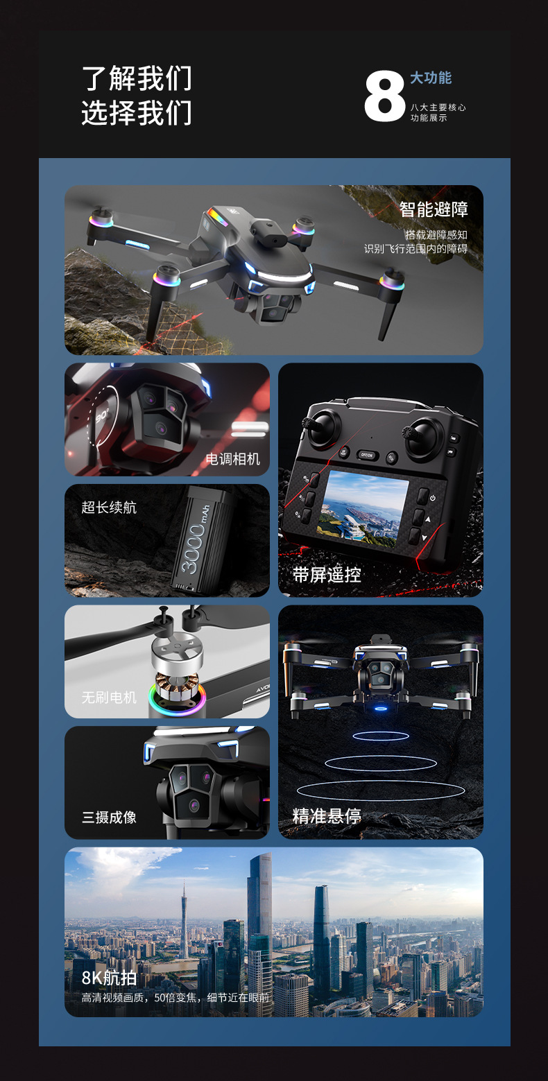 h20 drone new cross-border screen-controlled aerial photography smart obstacle avoidance quadcopter remote control aircraft e88 toy vehicle m107