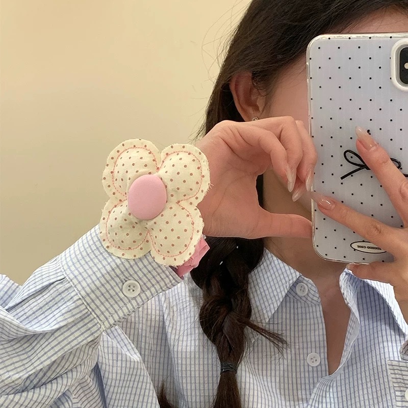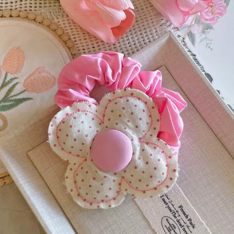 pink circle polka dots flowers