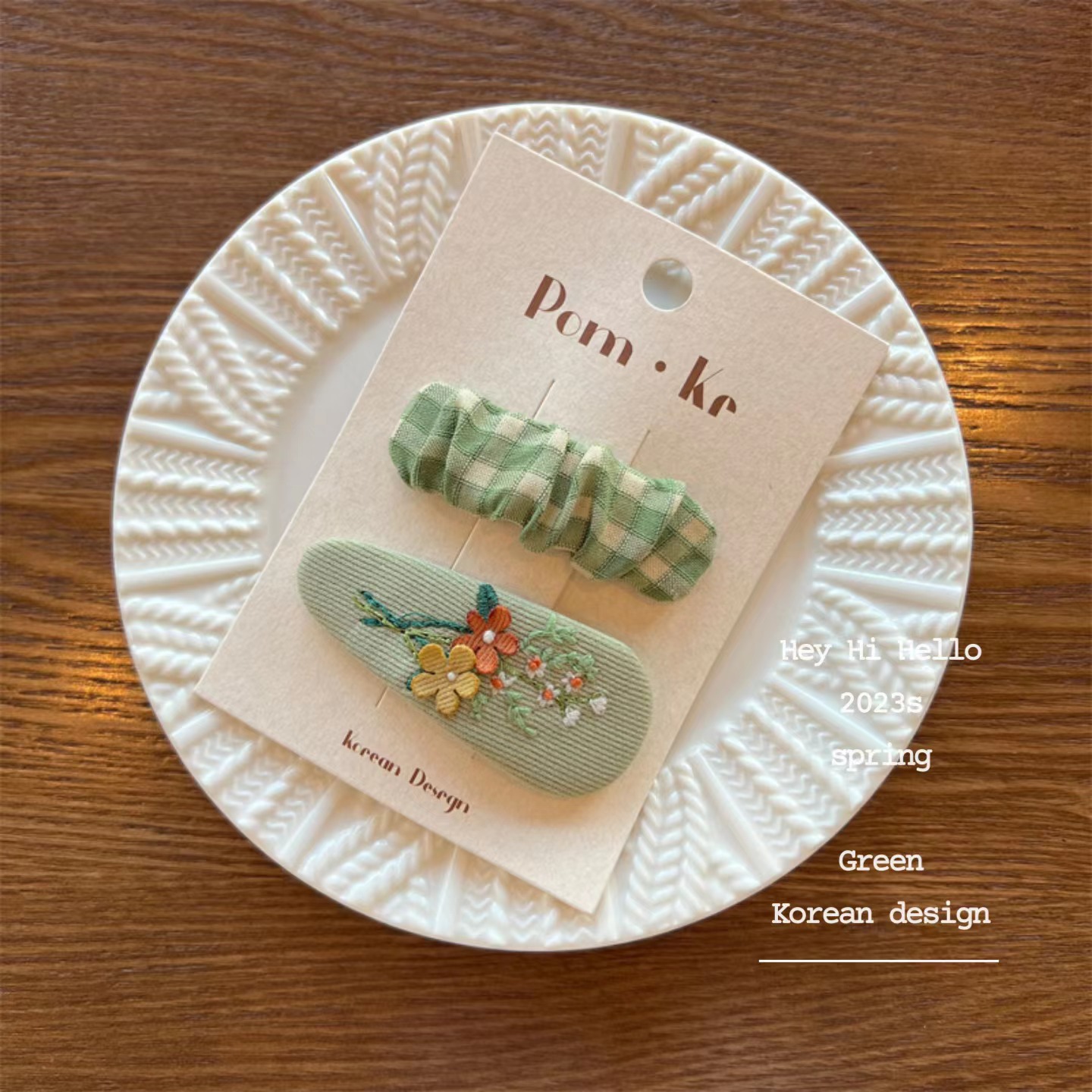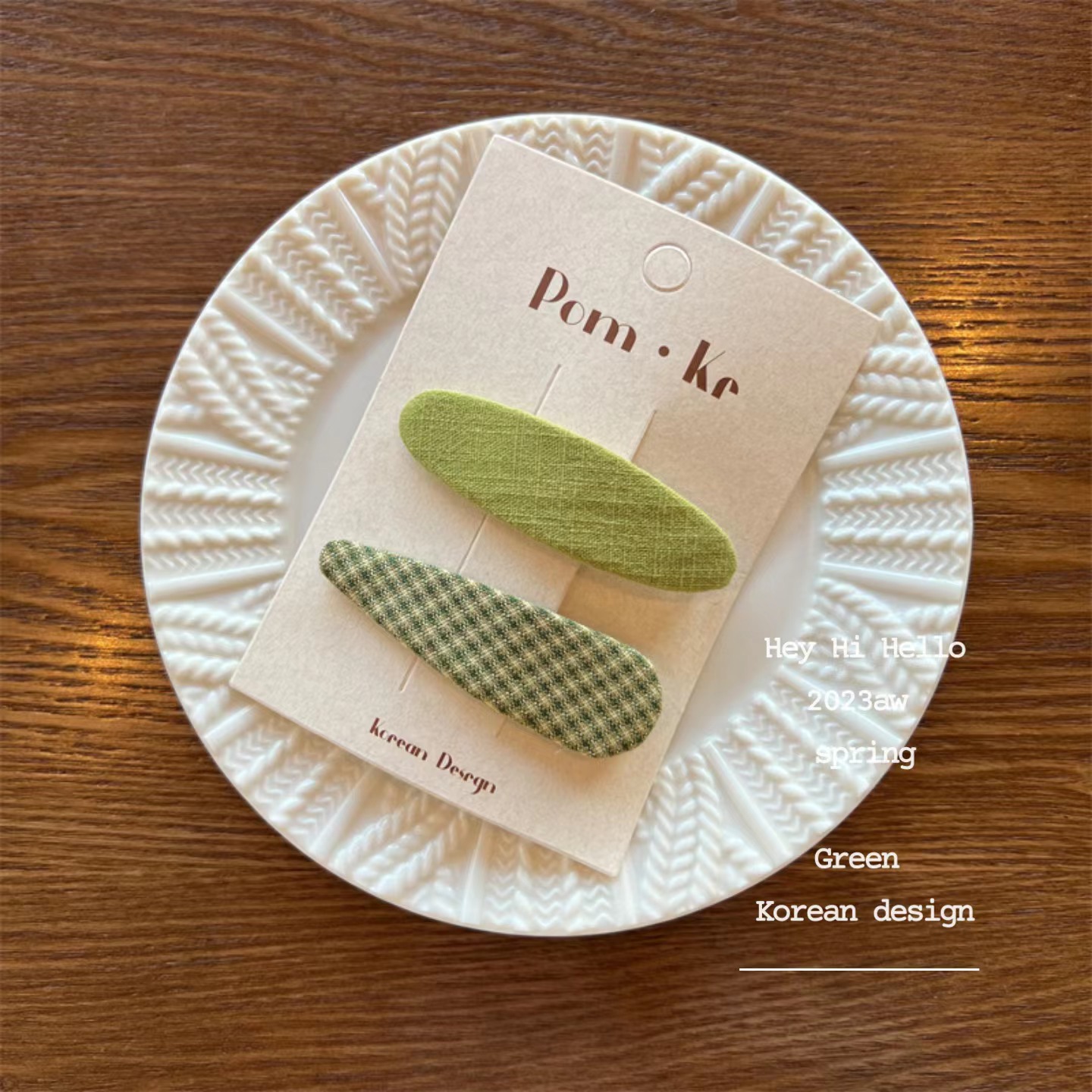 【49】green plaid hair clip