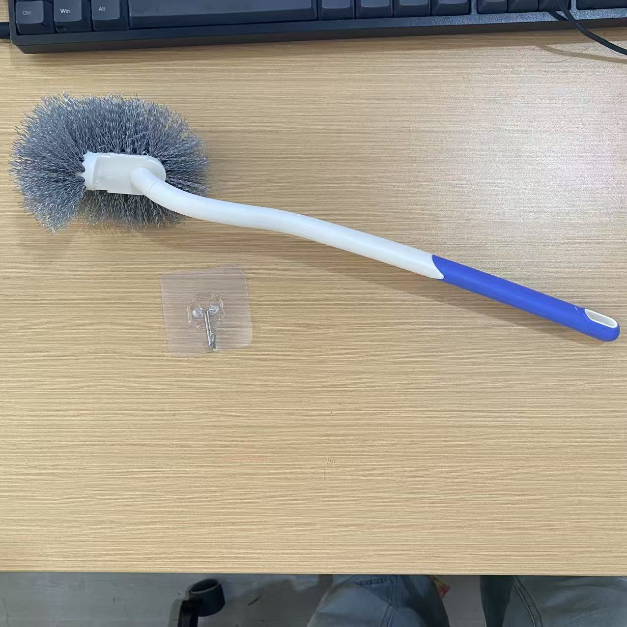blue toilet brush + transparent hook