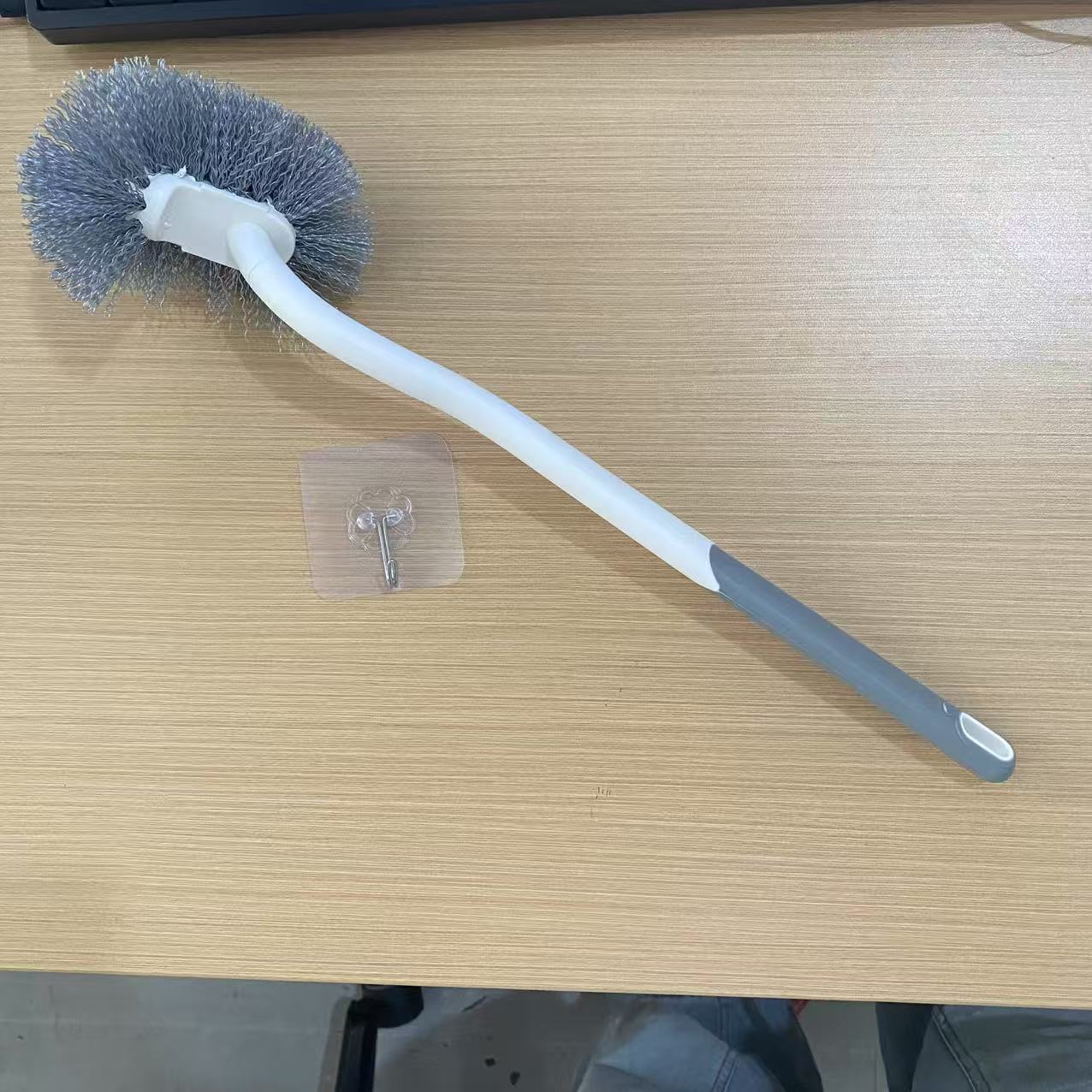 gray toilet brush + transparent hook