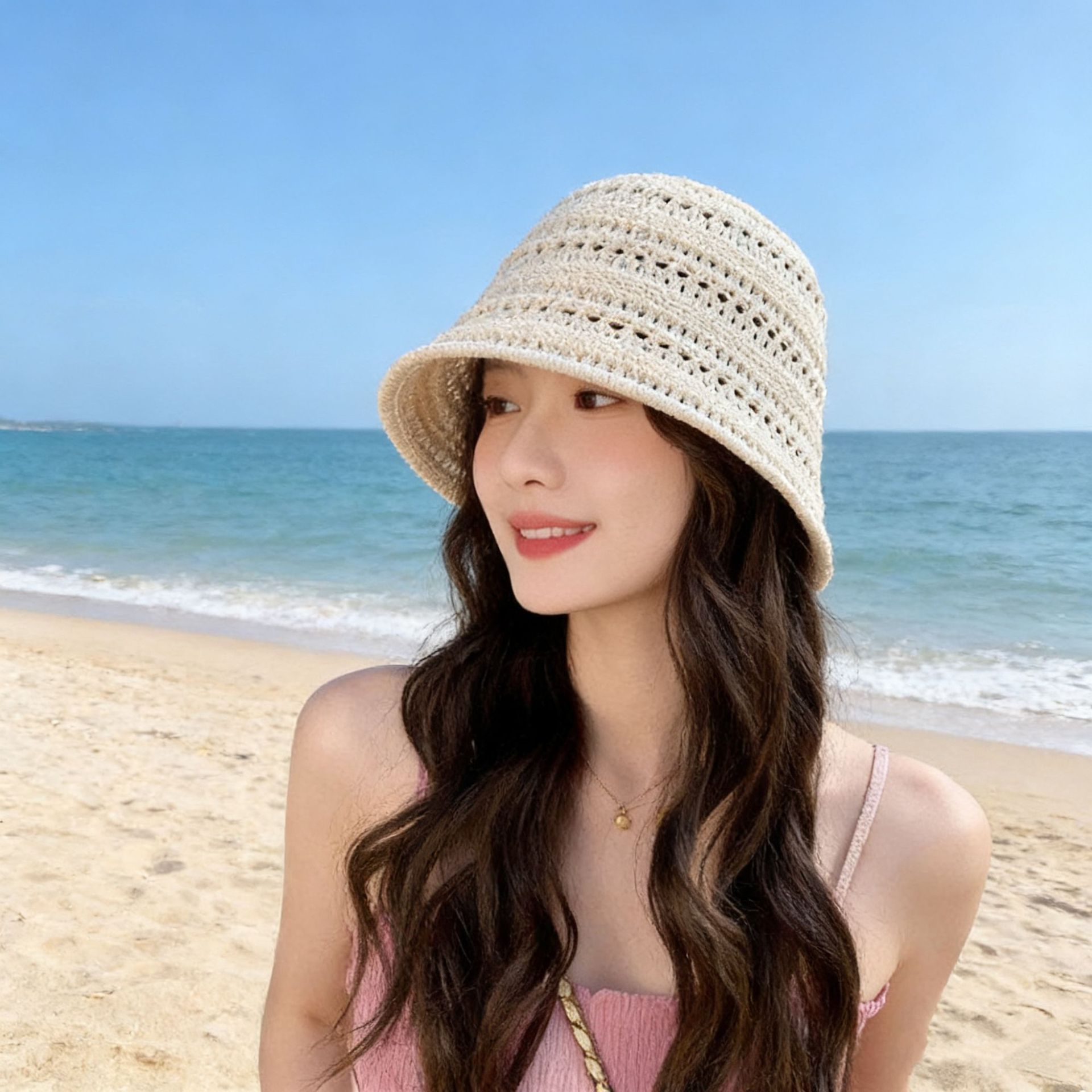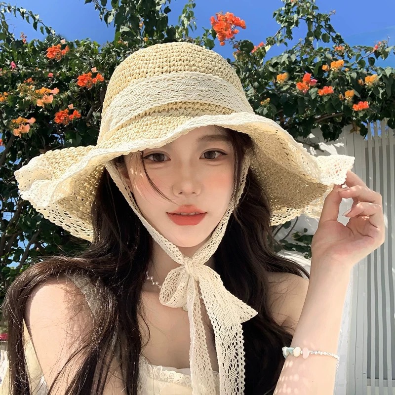 lace straw hat-beige