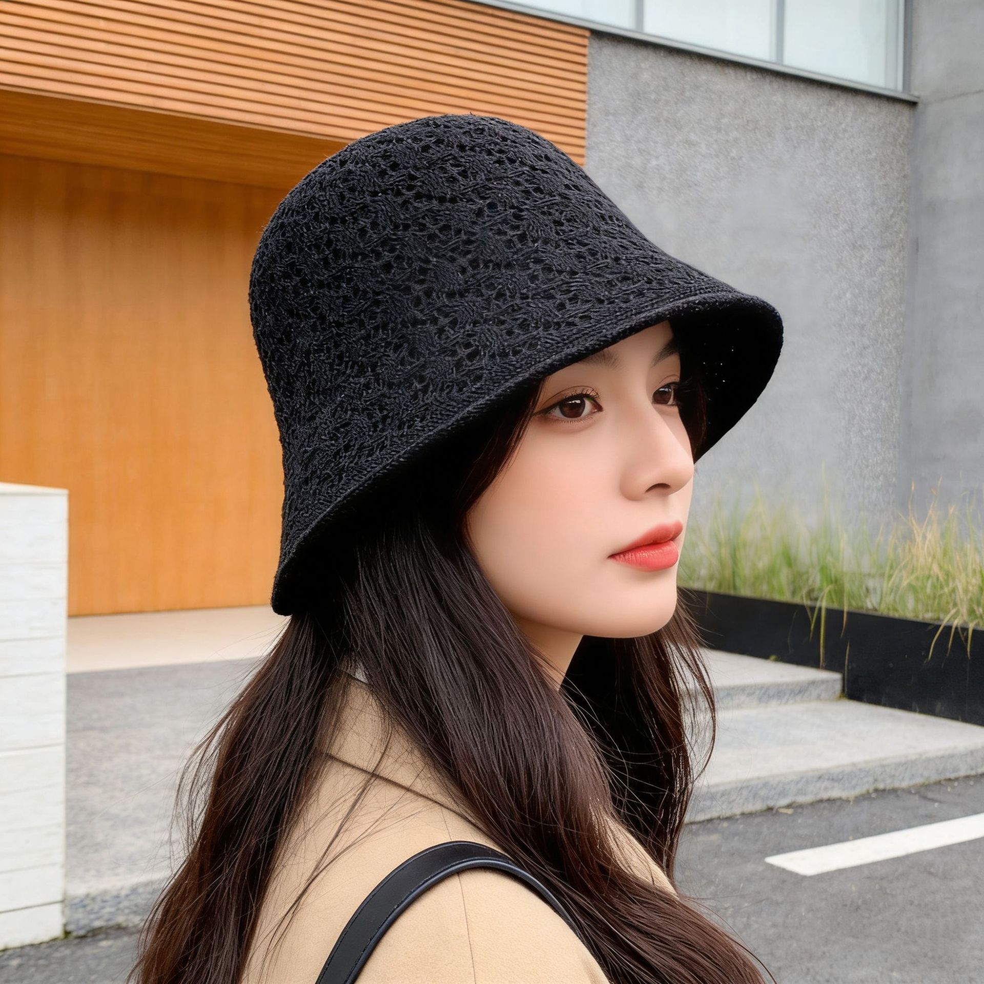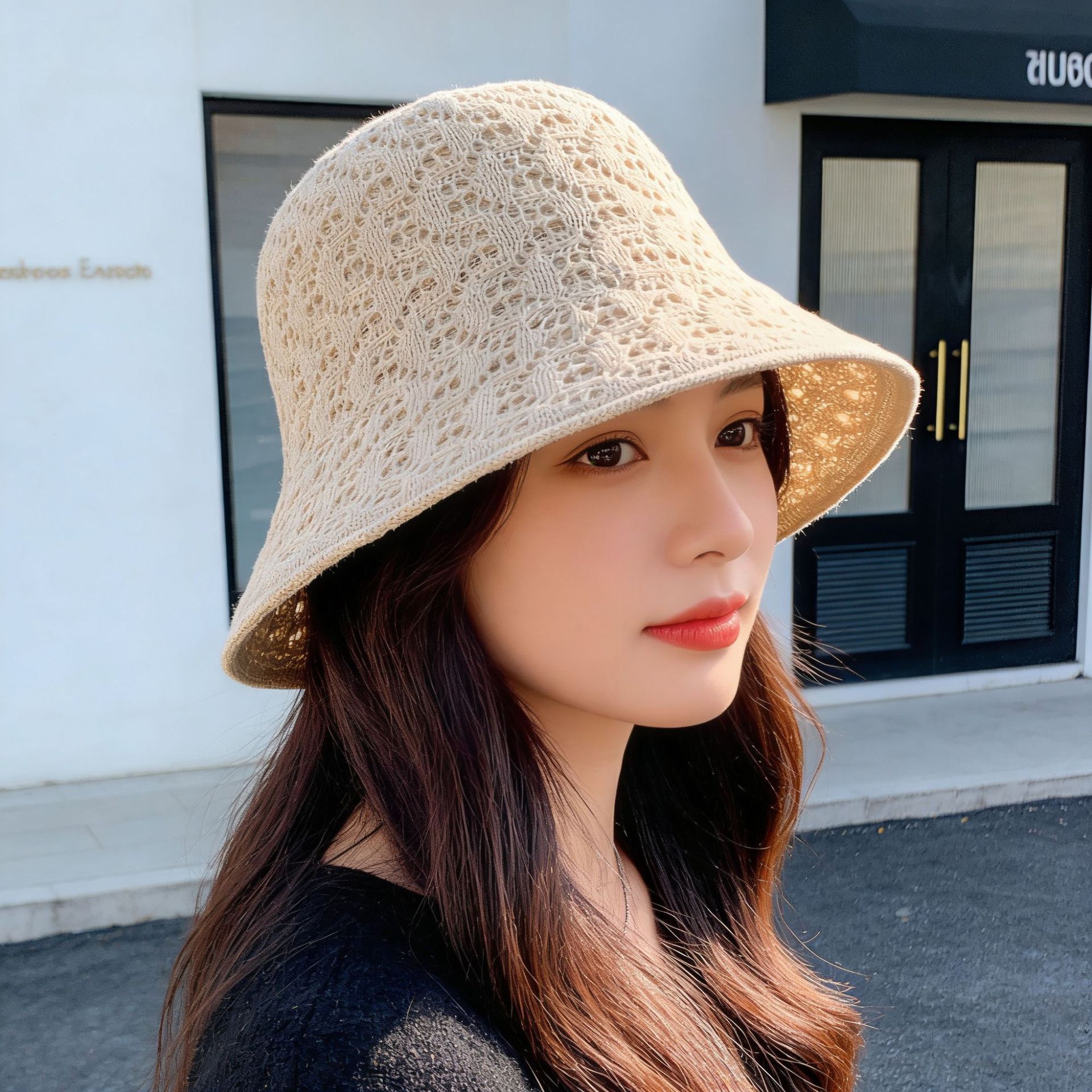 lace straw hat-khaki