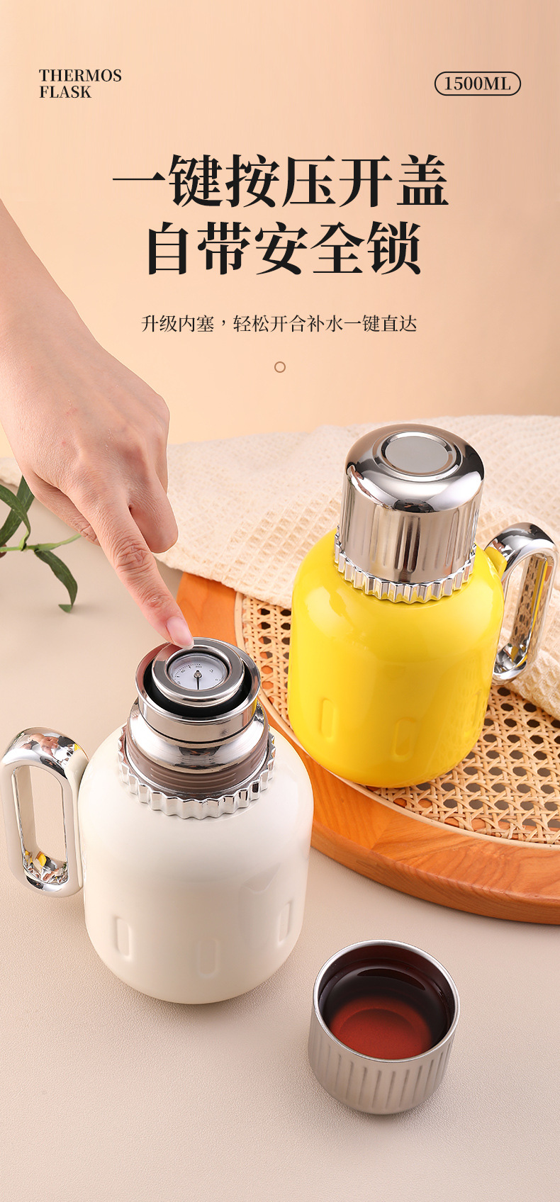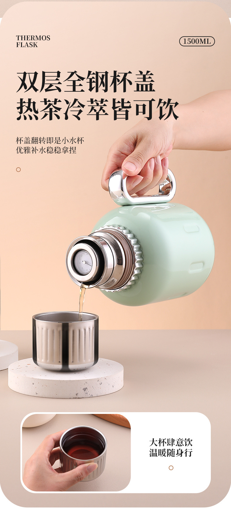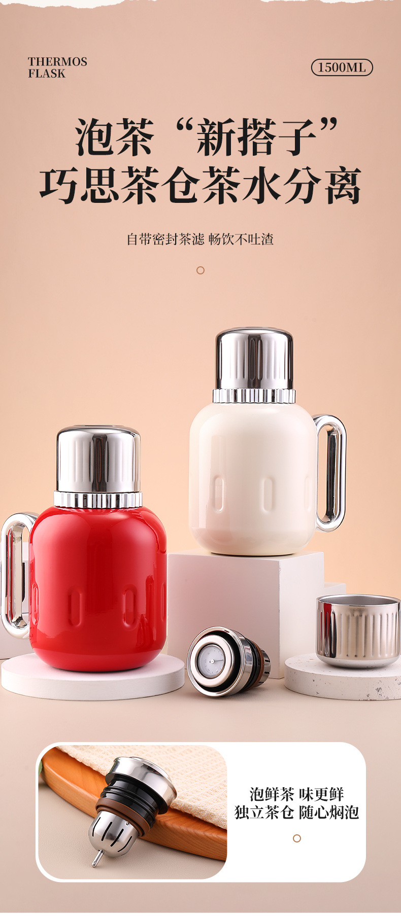 Home use stainless steel insulated kettle with large capacity, high-grade tea water separation, mechanical temperature display, portable new model for steaming tea, tea pot, water kettle