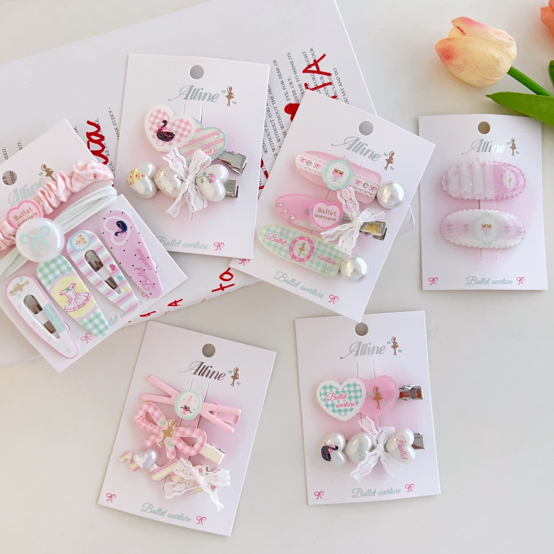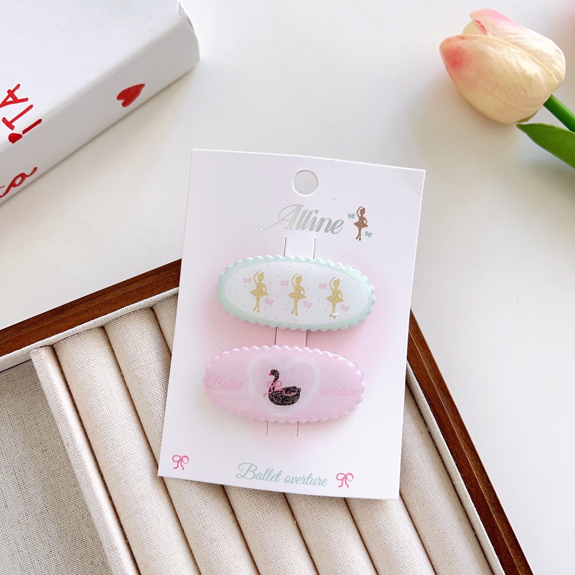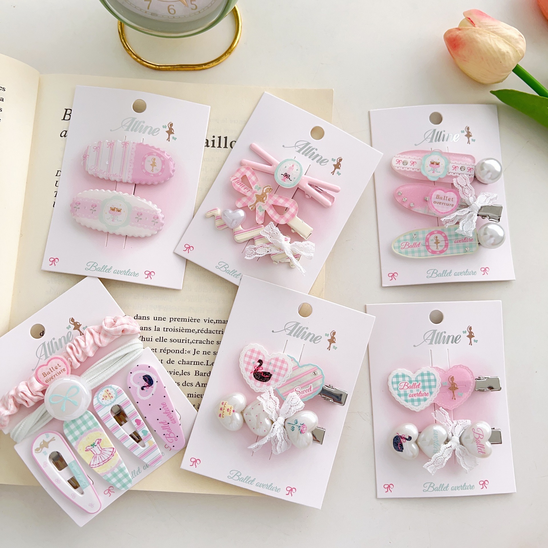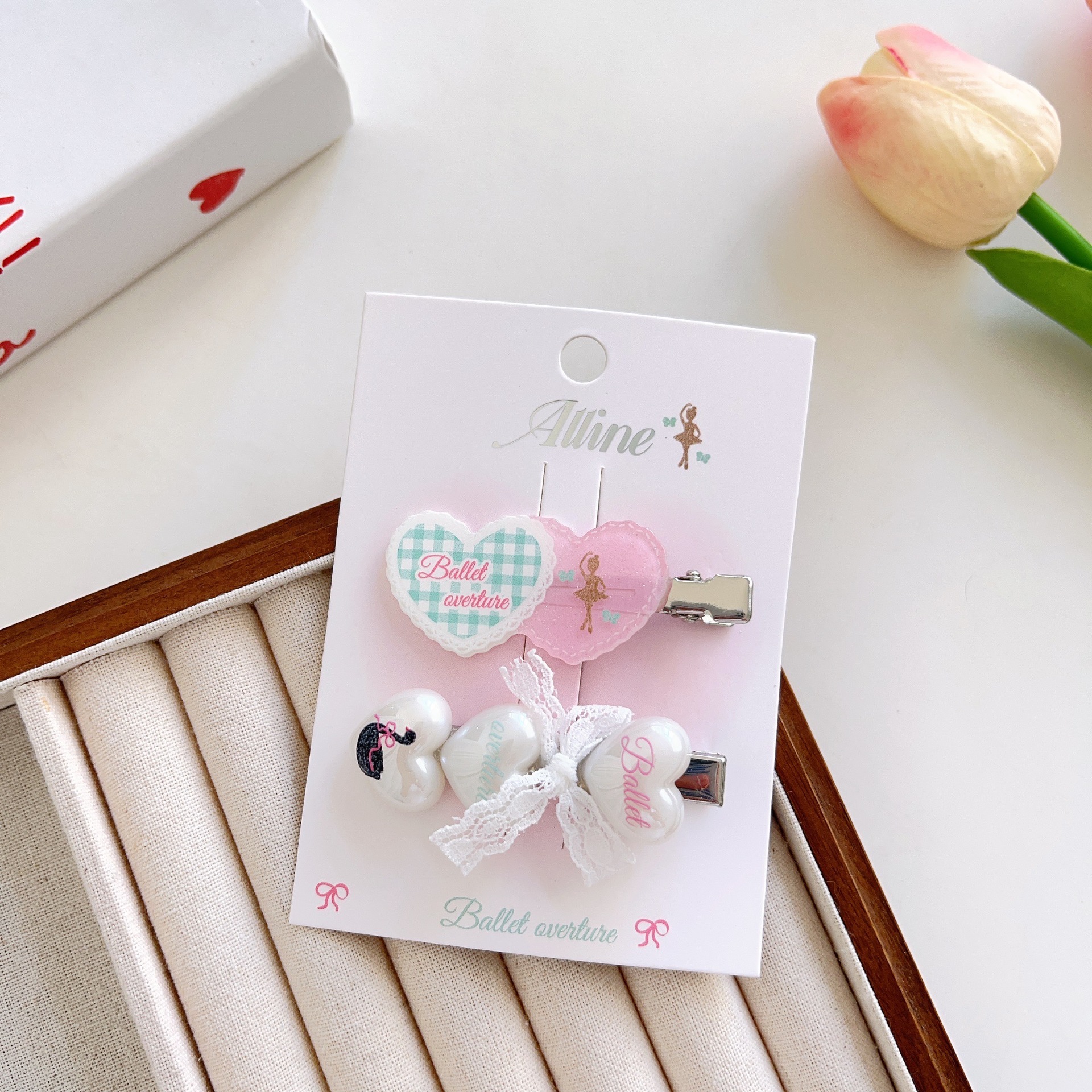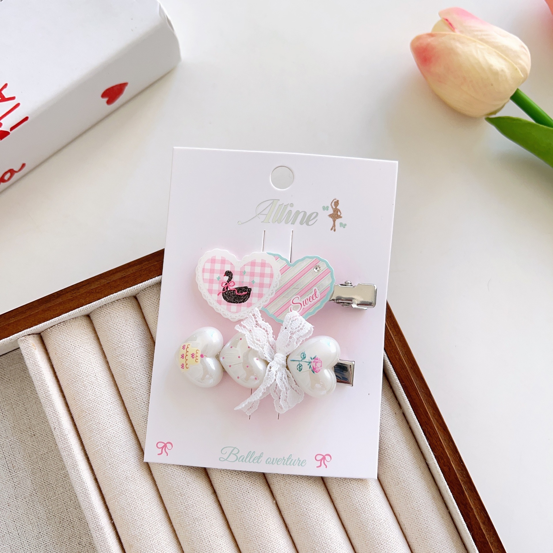 #6 three heart-shaped swan clips