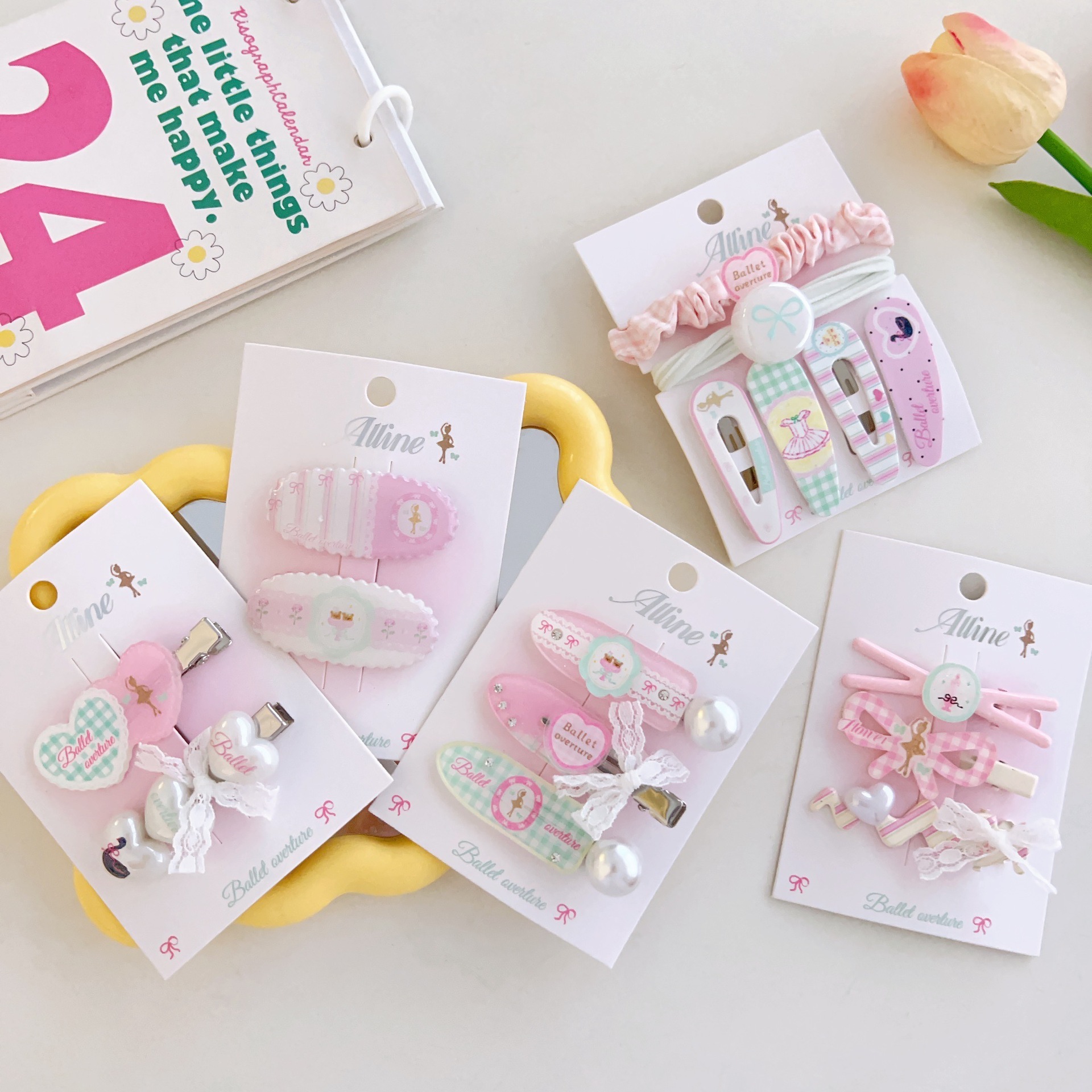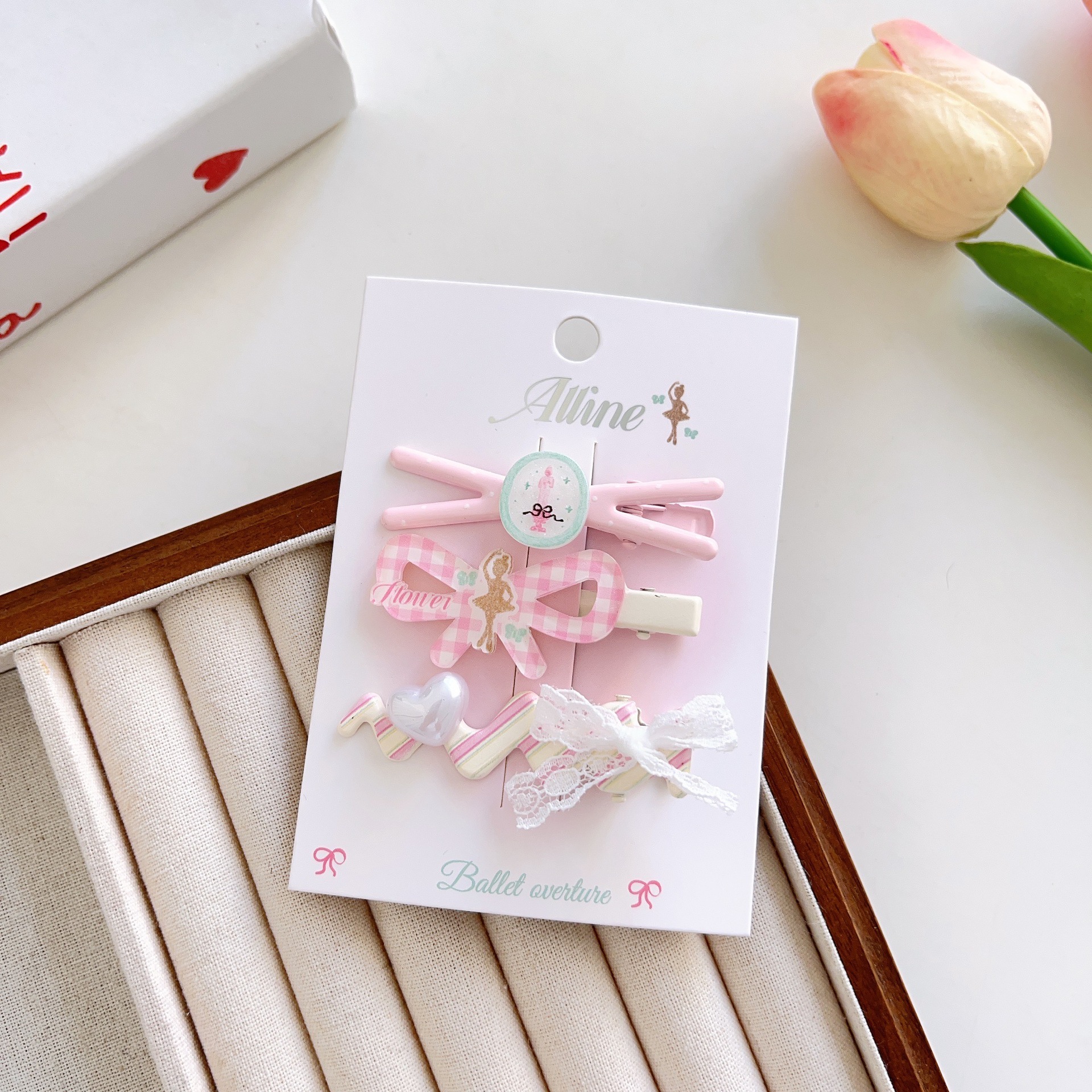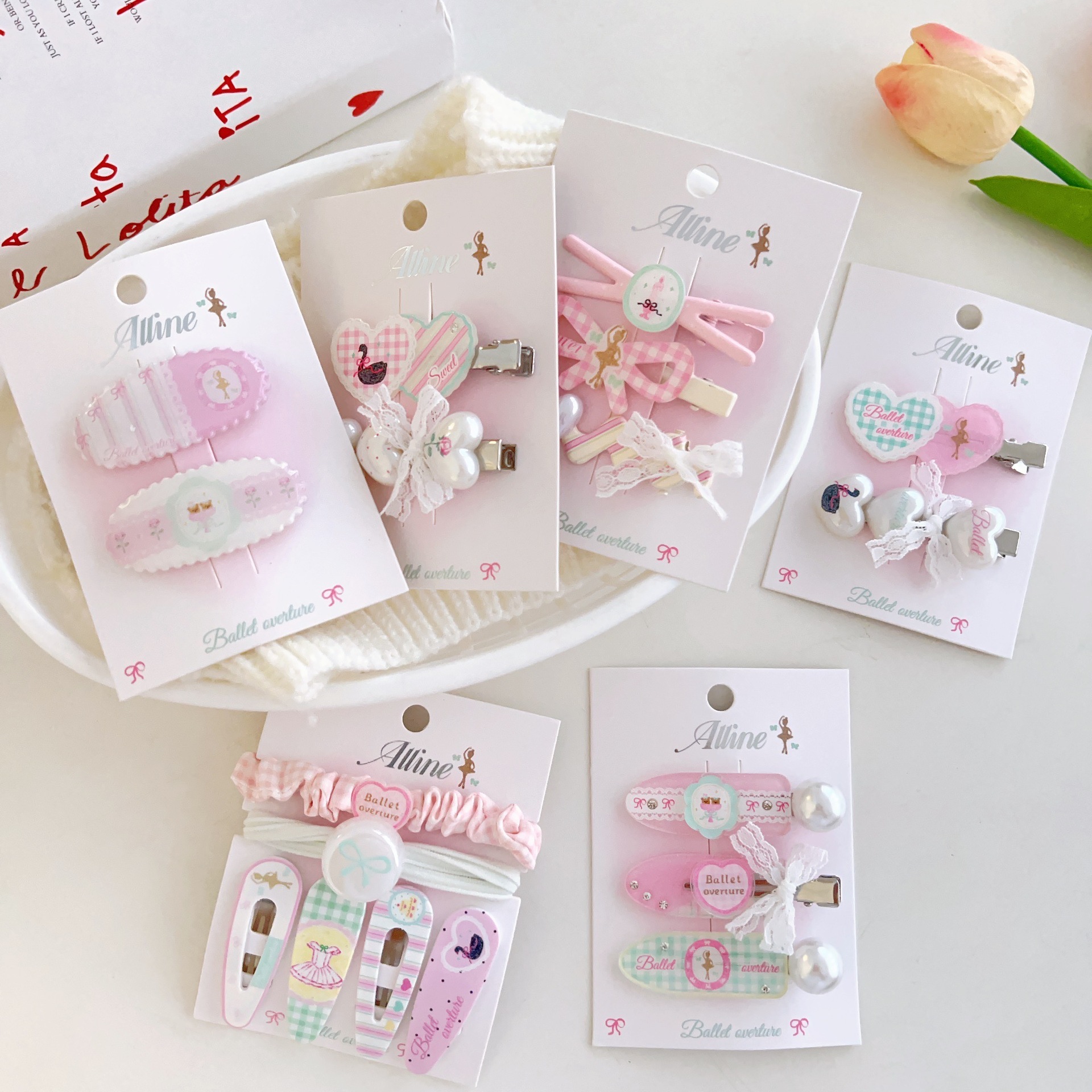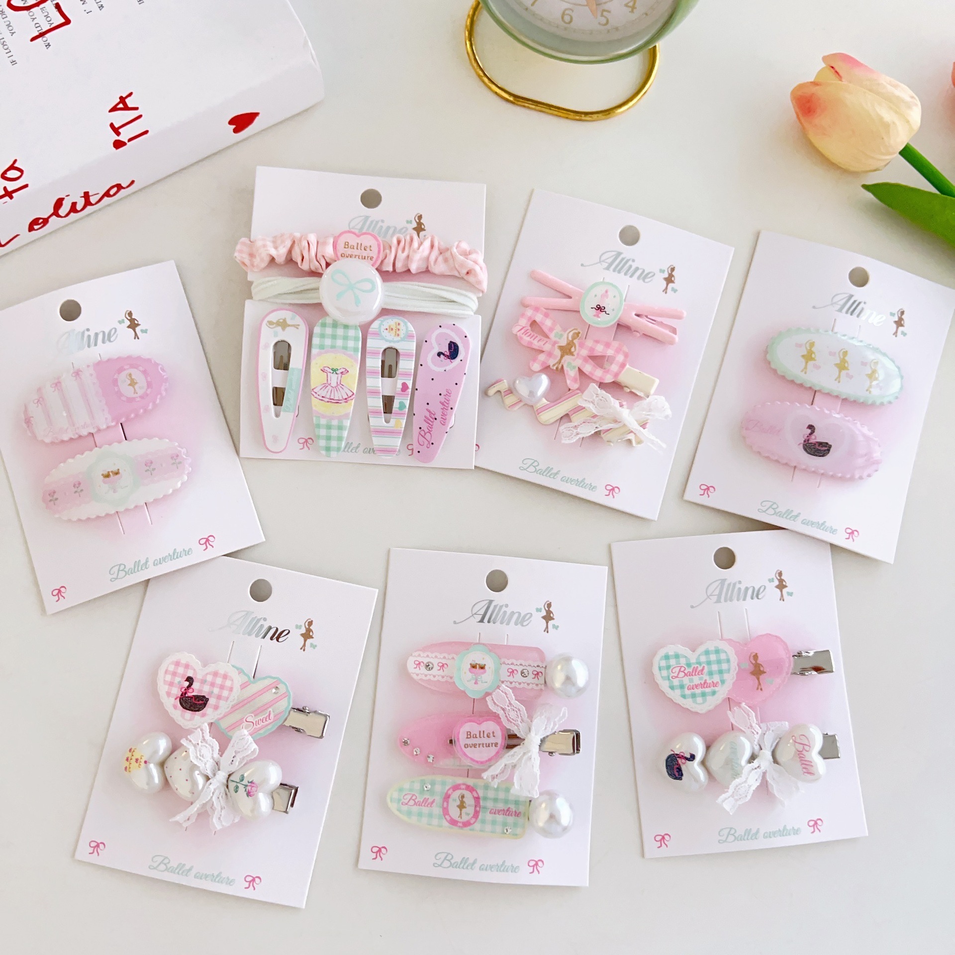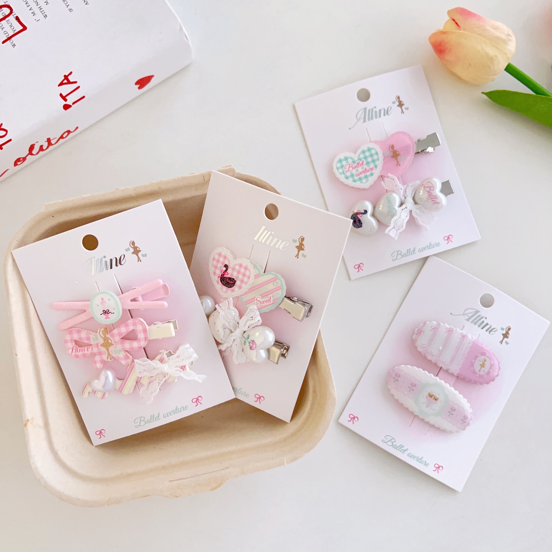 #6 three heart-shaped swan clips