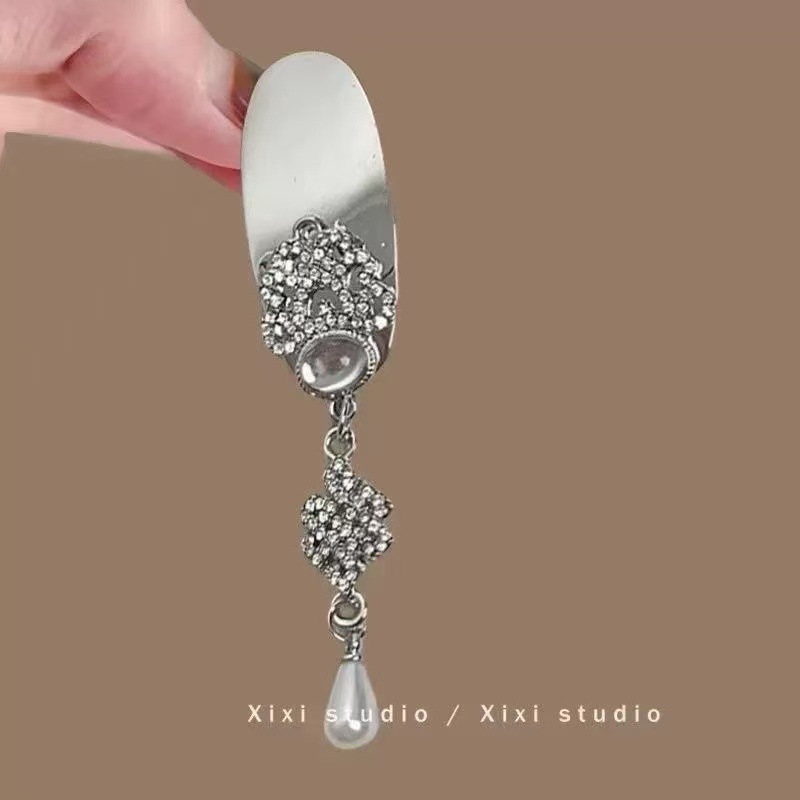 silver oval mirror surface barrettes