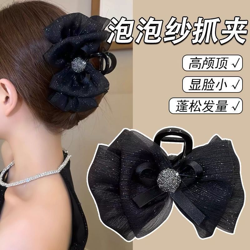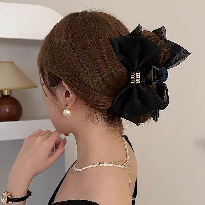 black min bow claw clip