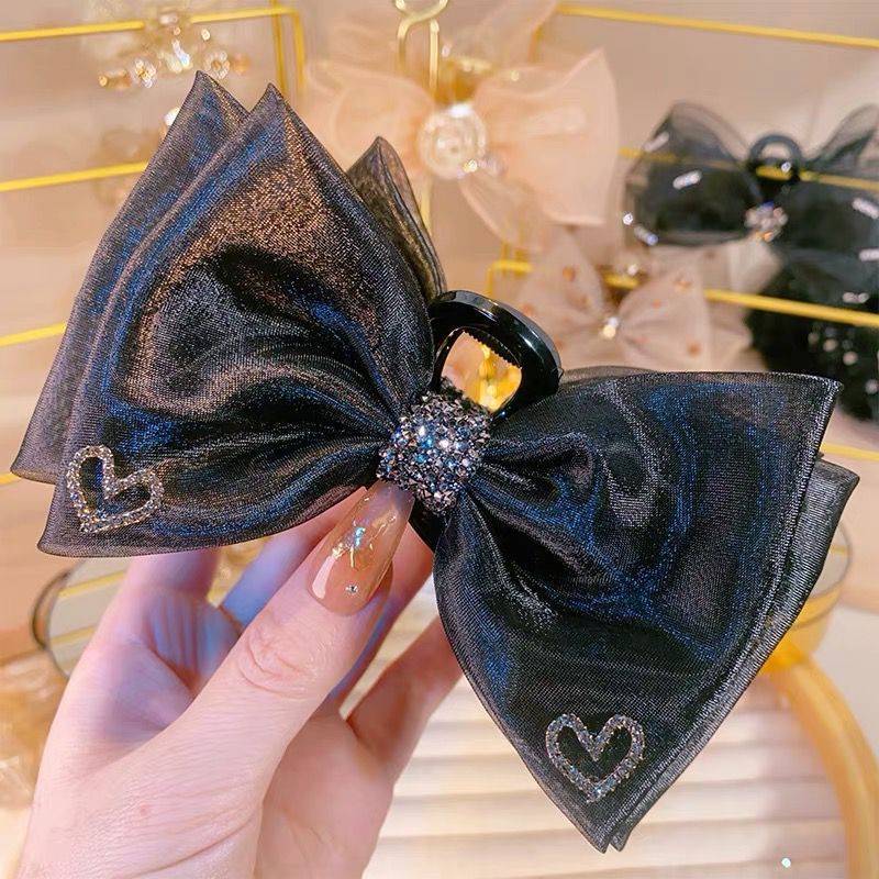 high-end heart-shaped satin bow claw clip