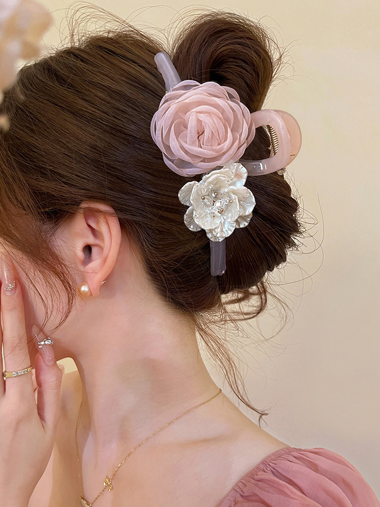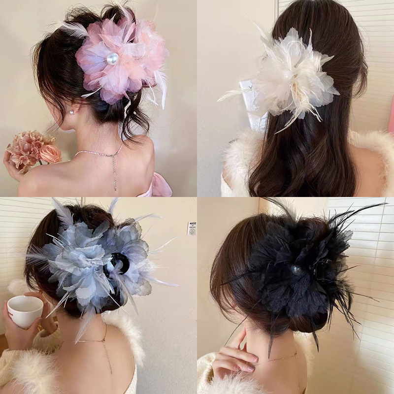 beige large flower feather grip