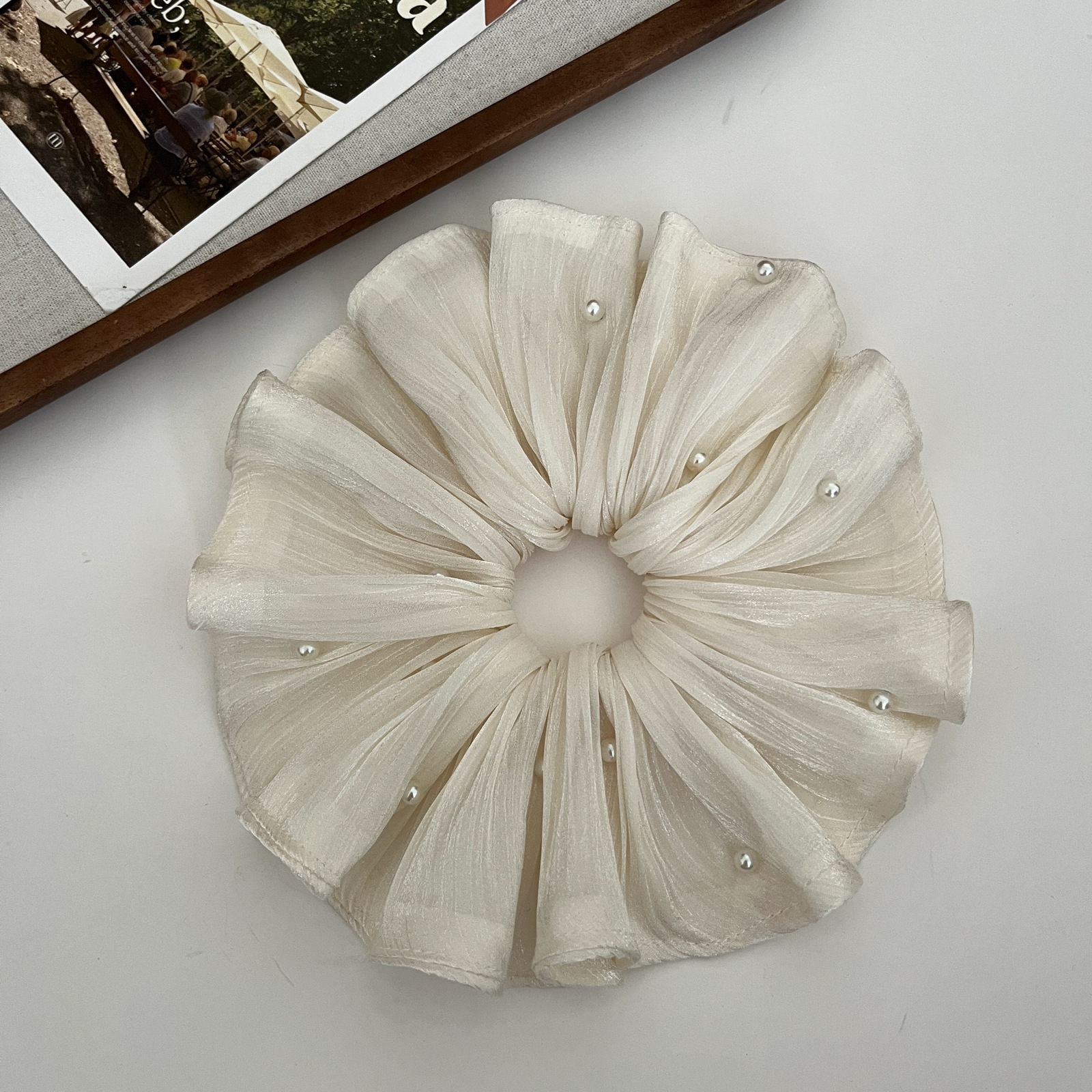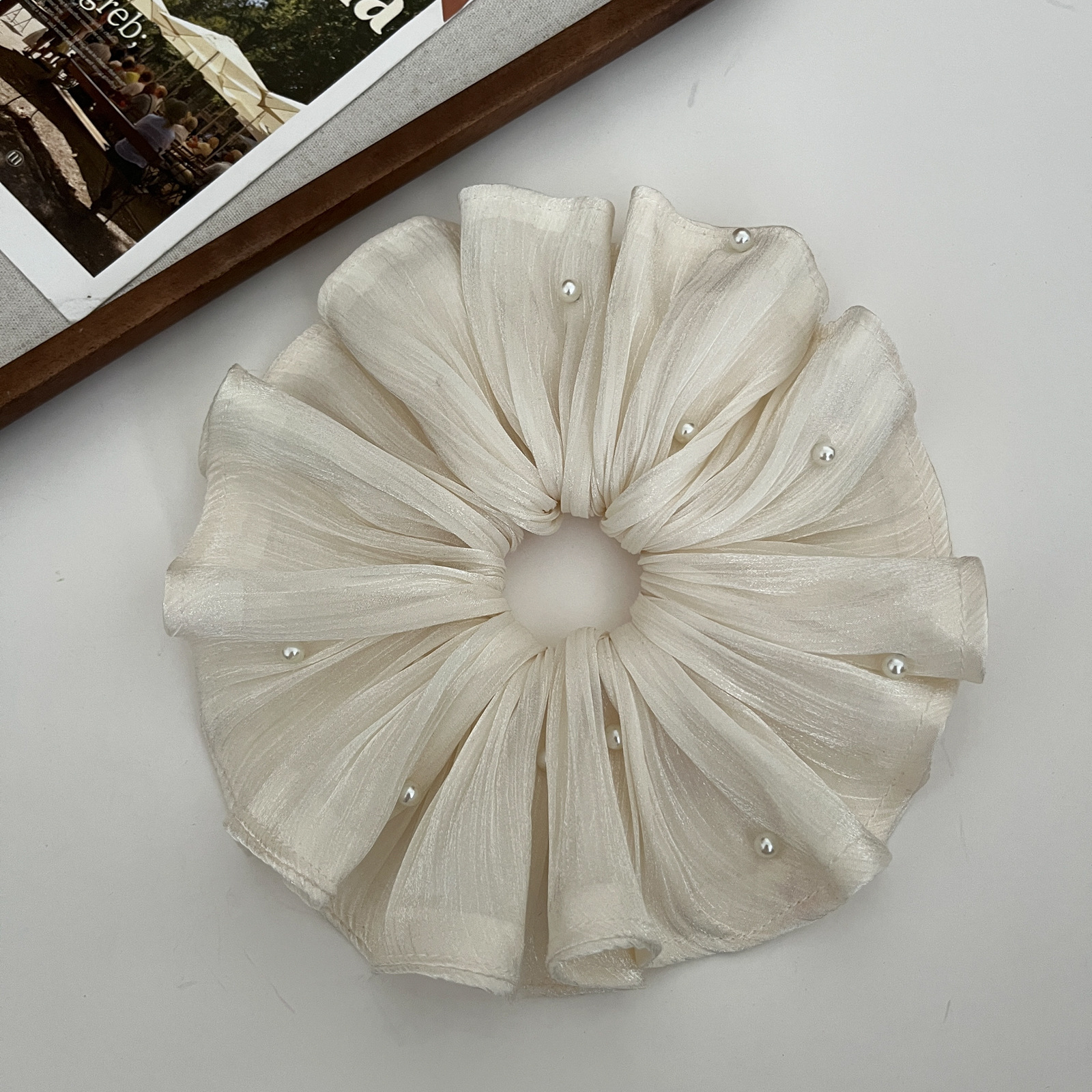 pearl-silk chiffon ring-beige-apricot