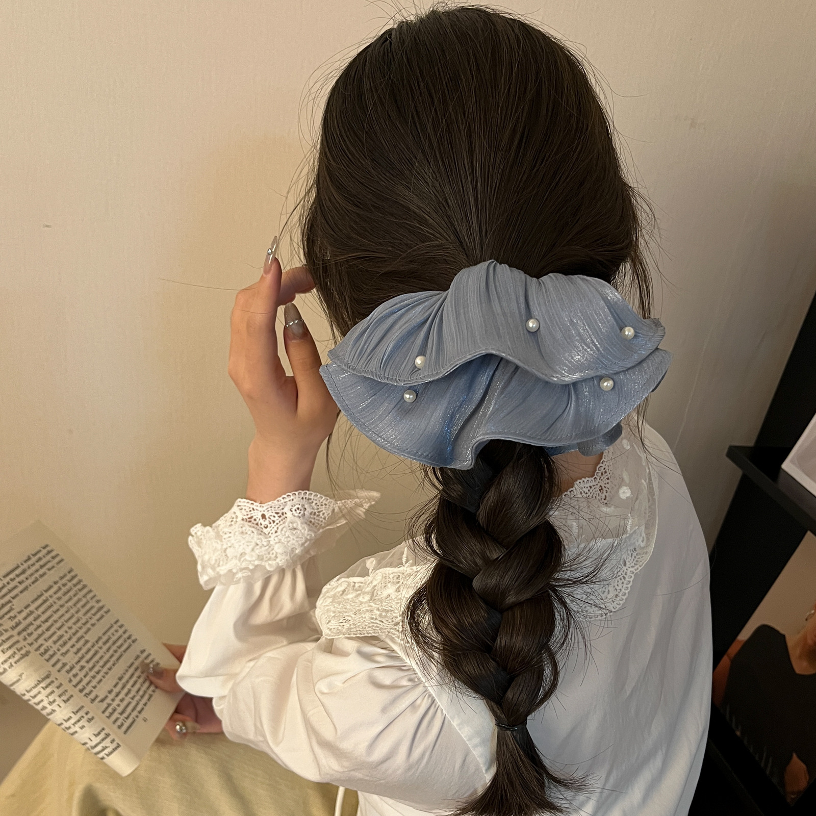 pearl-silk chiffon ring-mist blue