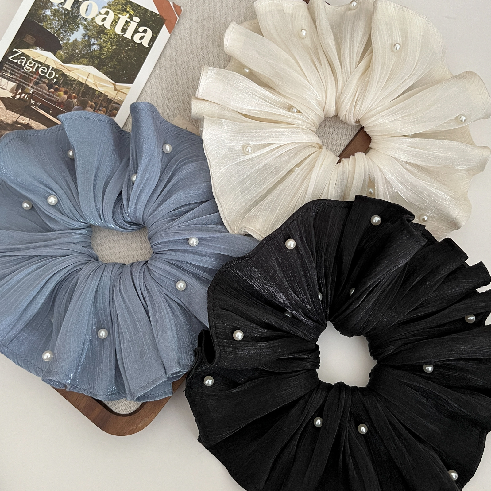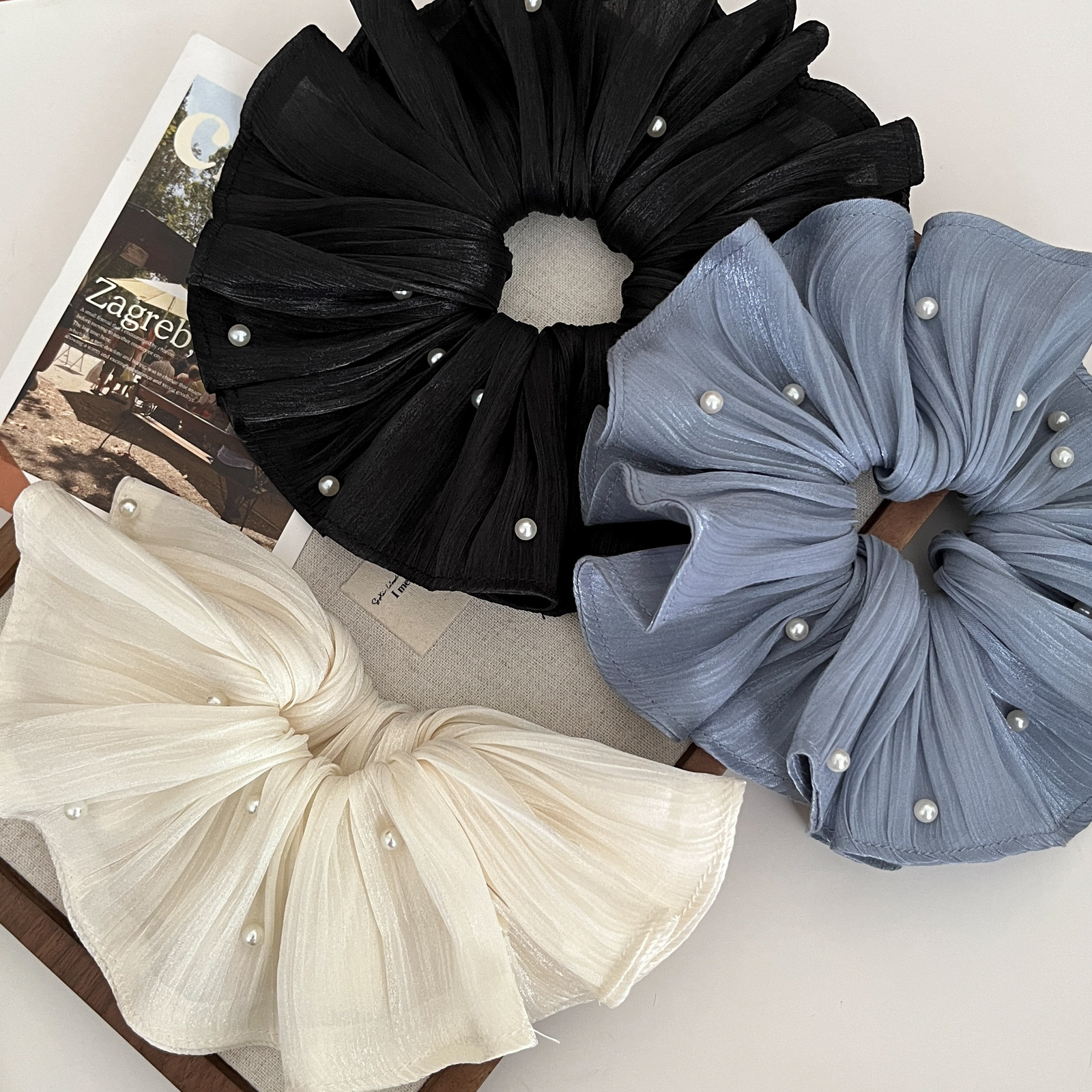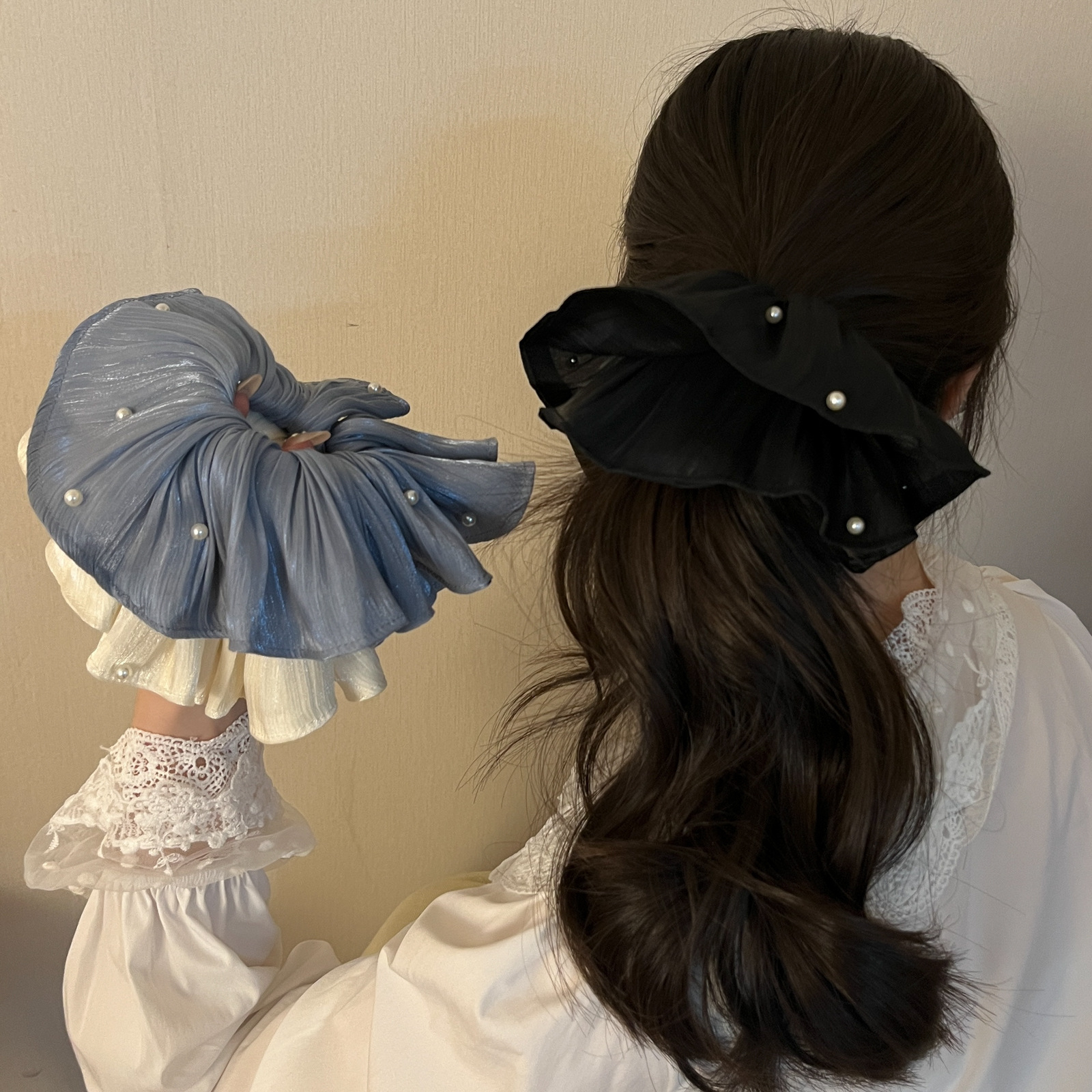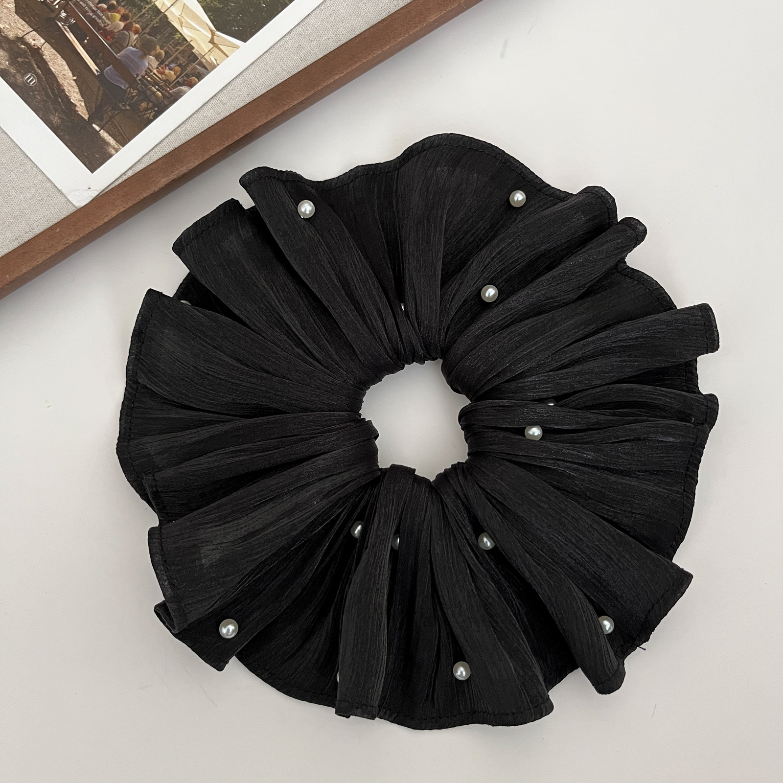 pearl-sheen chiffon ring-black