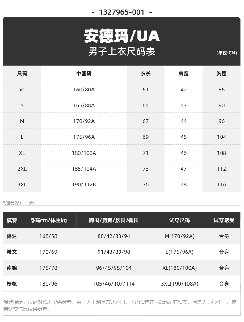 size: 165/88a/s 170/92a/m
