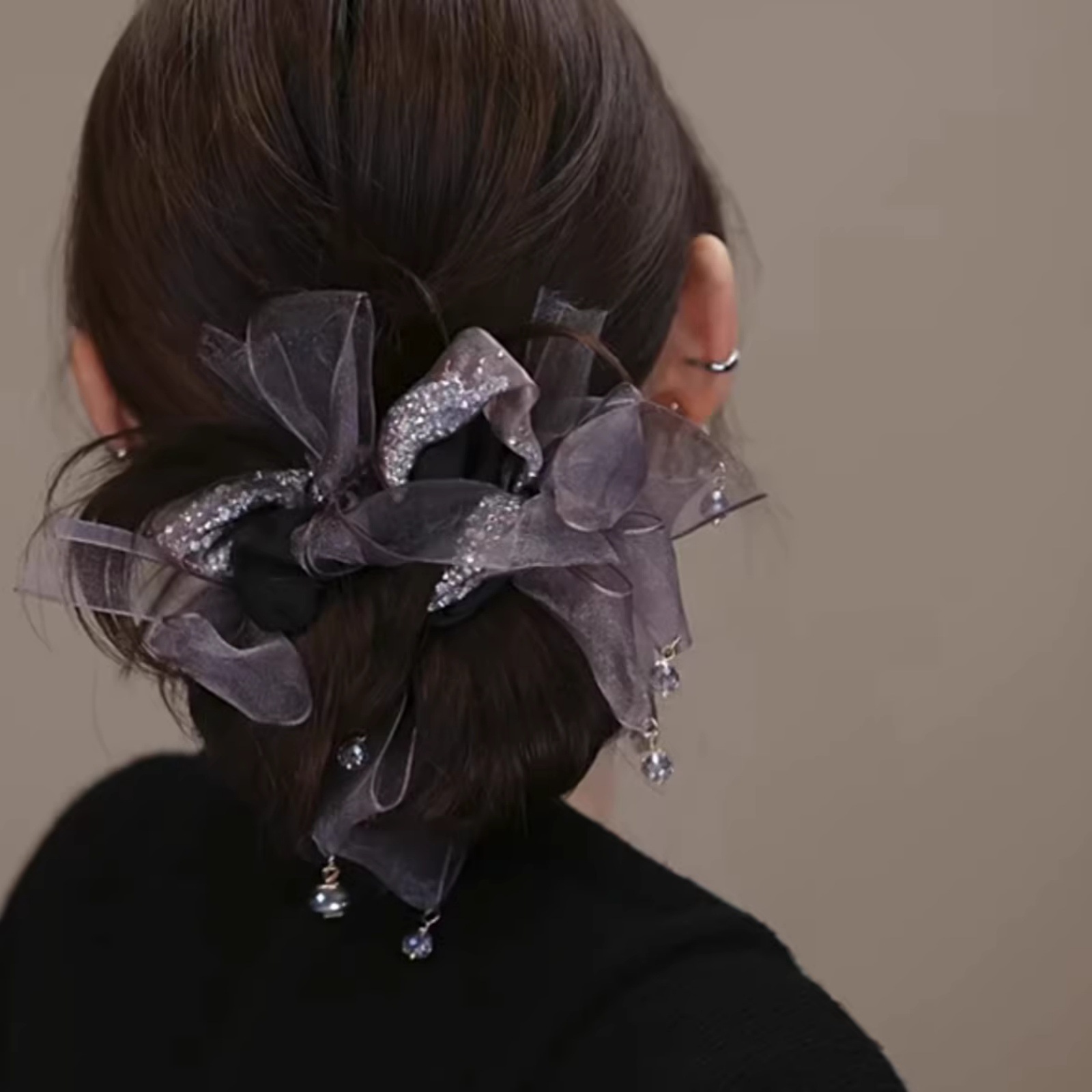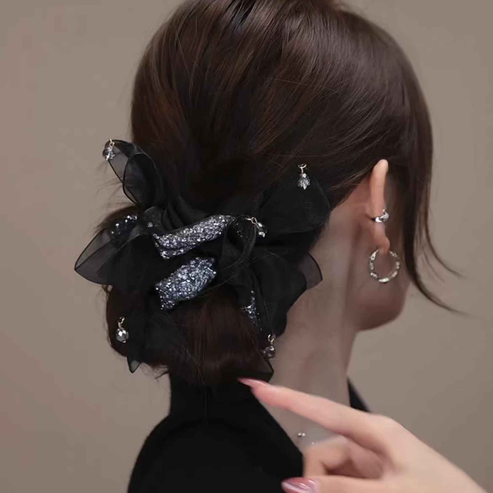 diamond in the debris bead hair ring-black