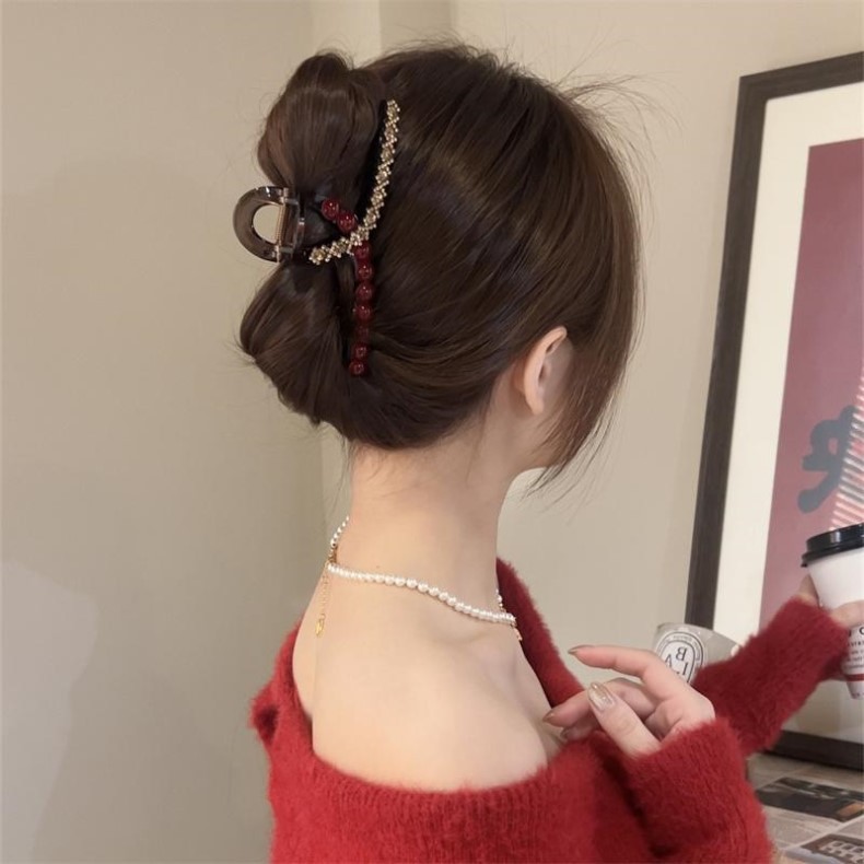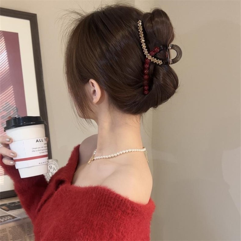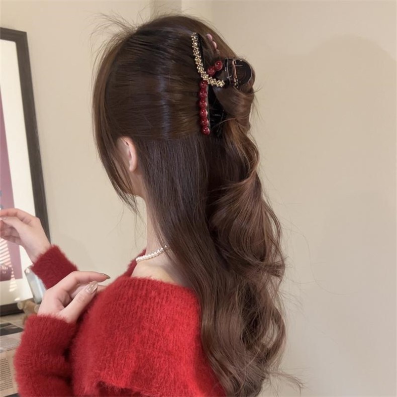 red rhinestone pearl ribbon [13cm]