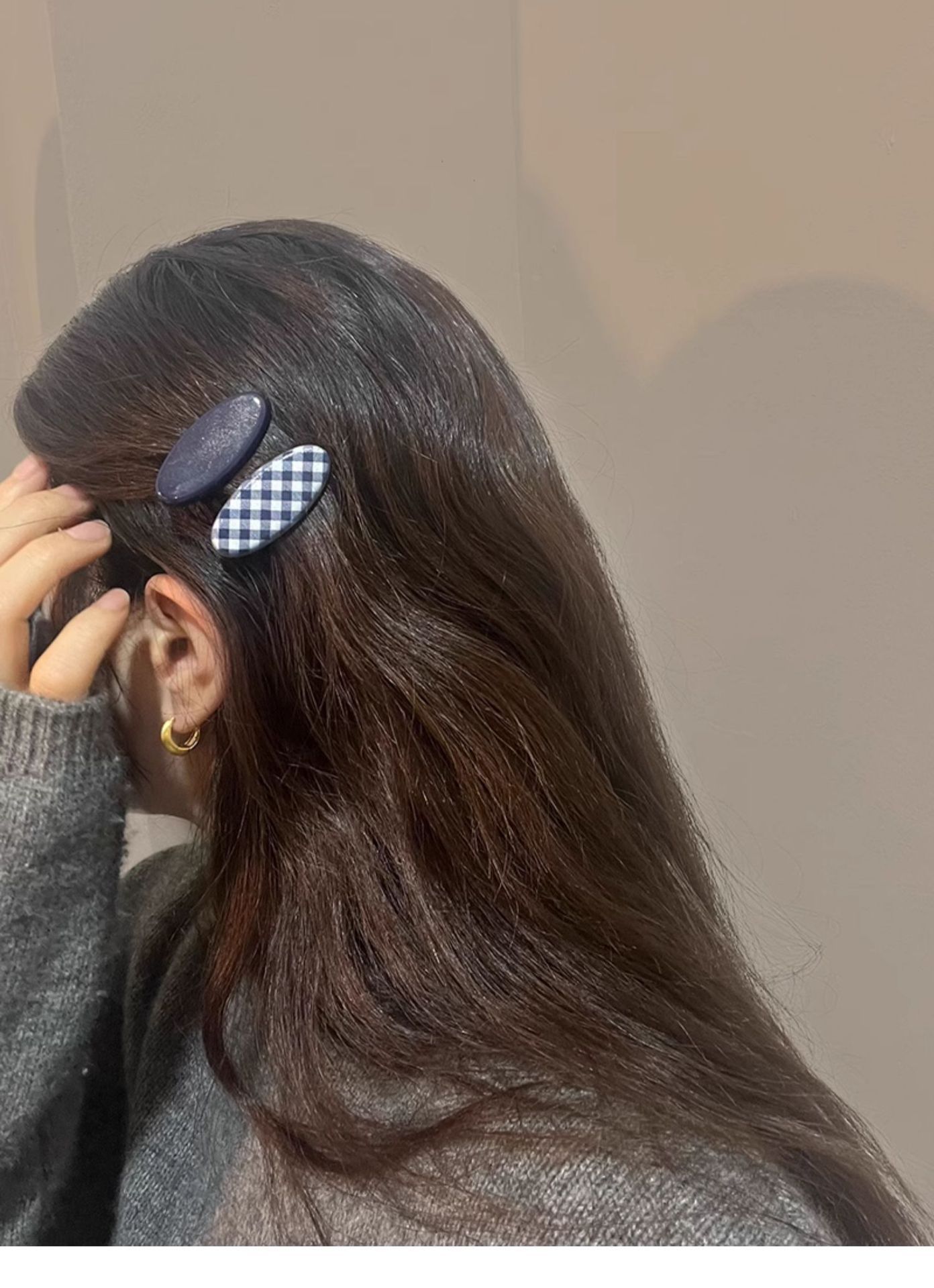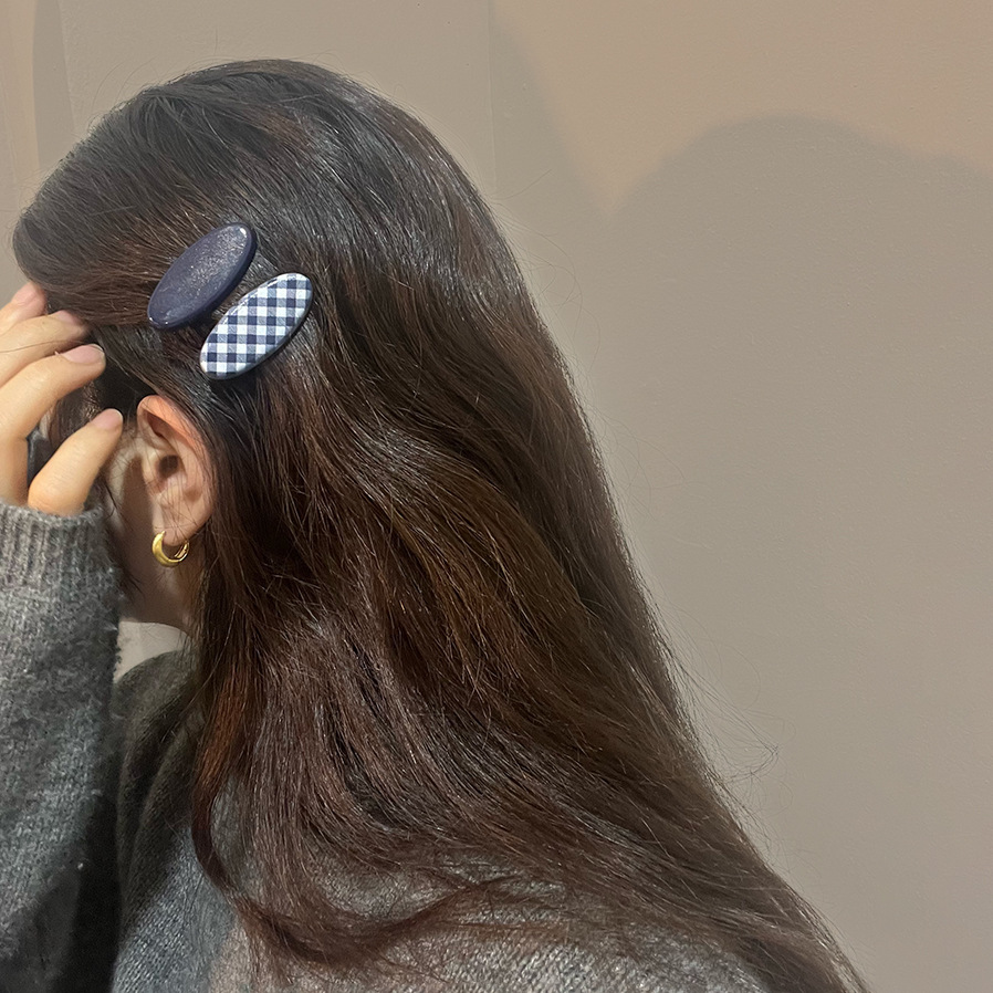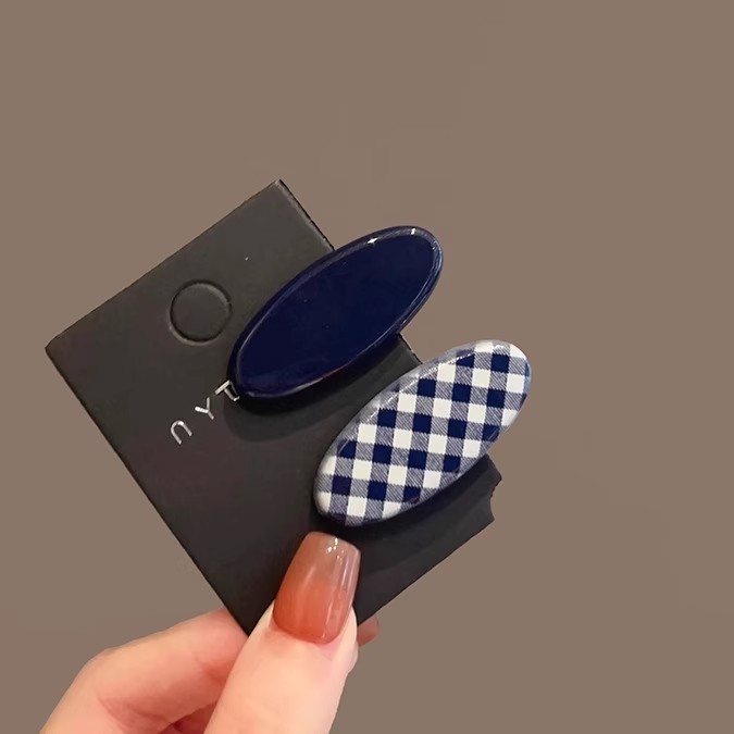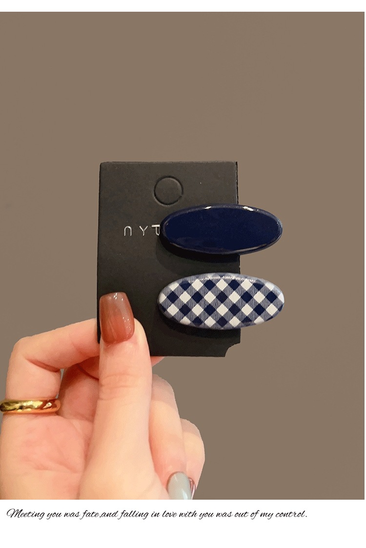 navy blue plaid edge clip one-pair package