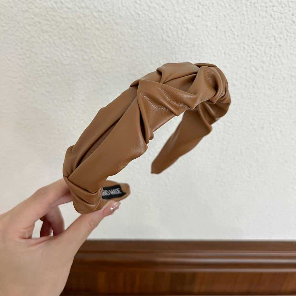 #6 high-crown wide-brimmed pleated headband, coffee color