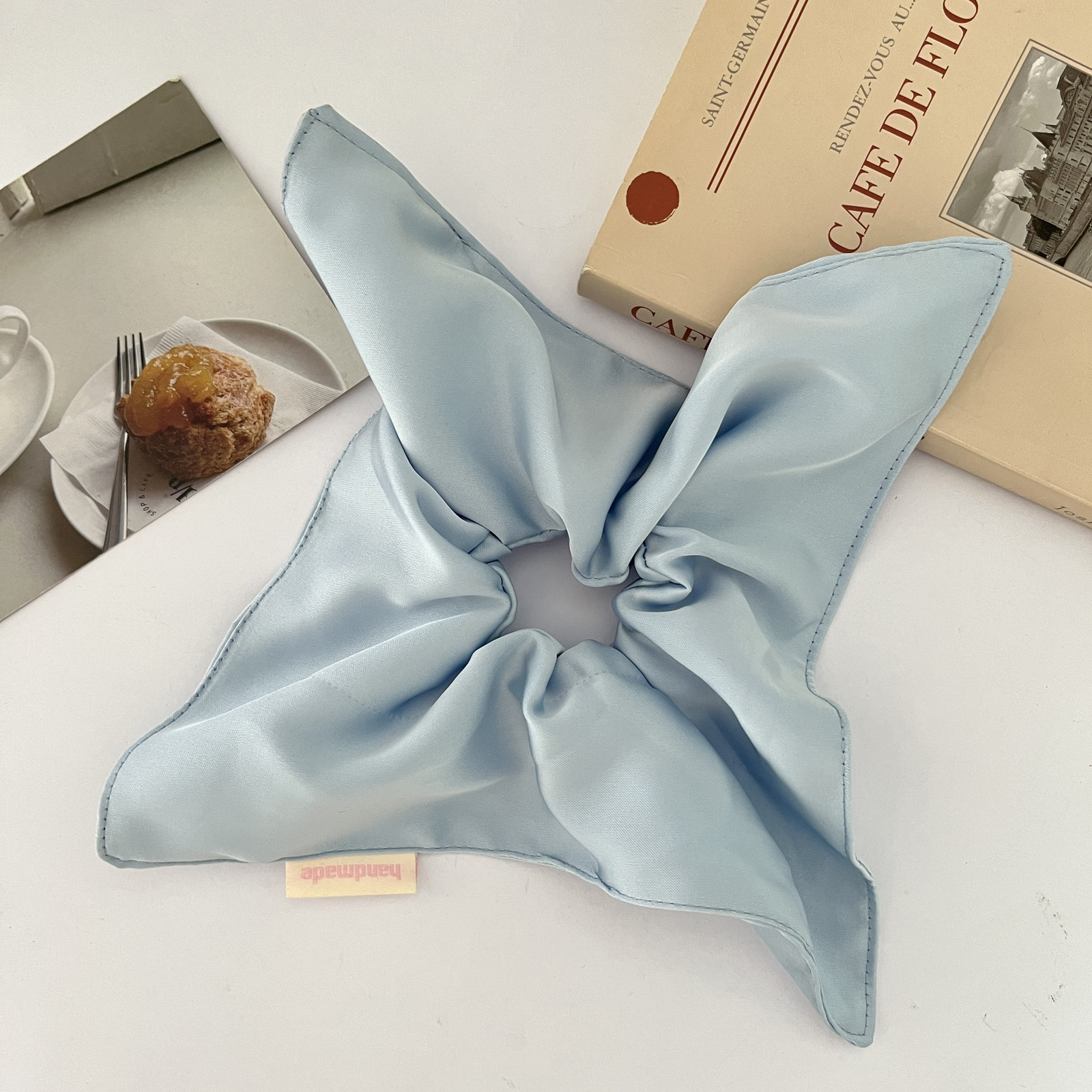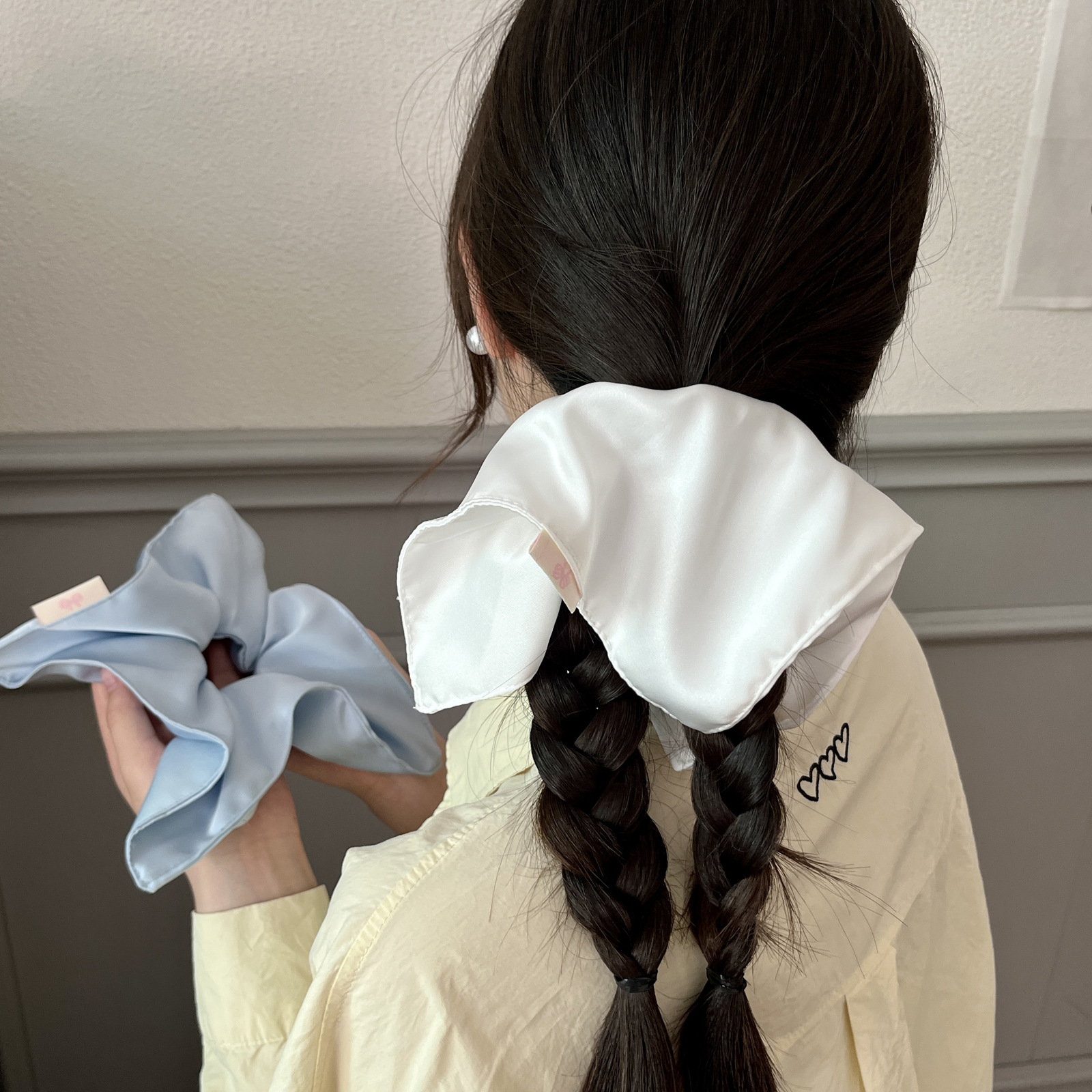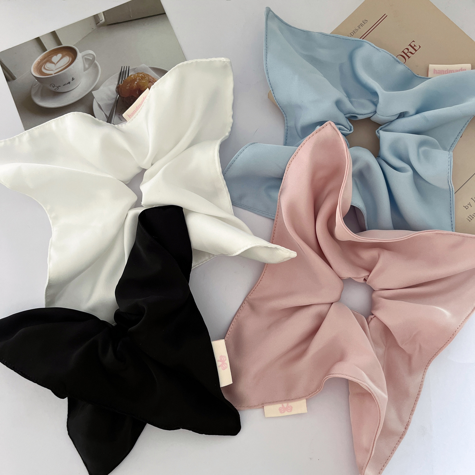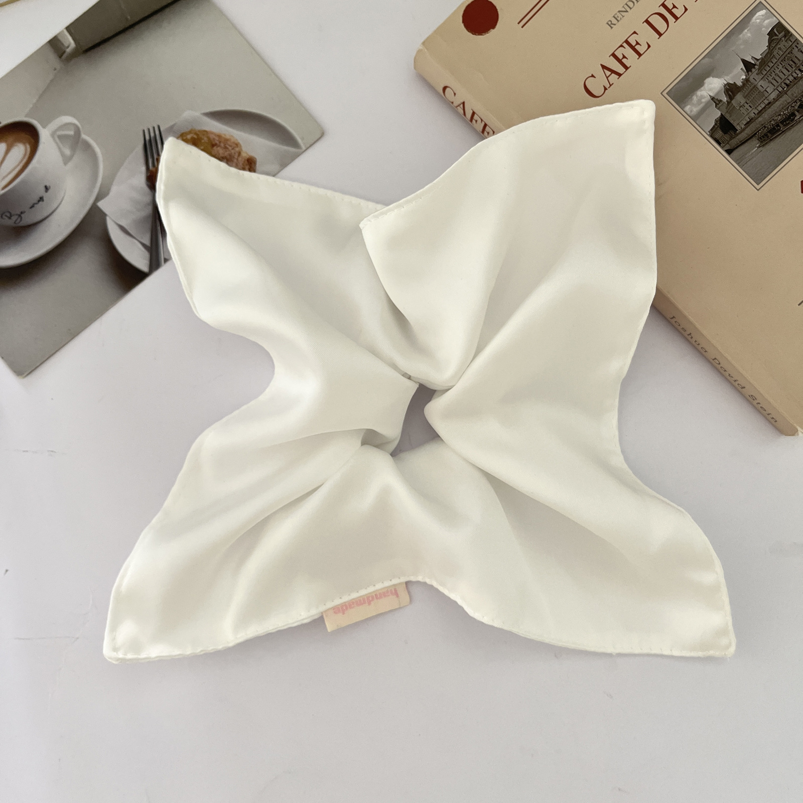 white solid-color square hair tie