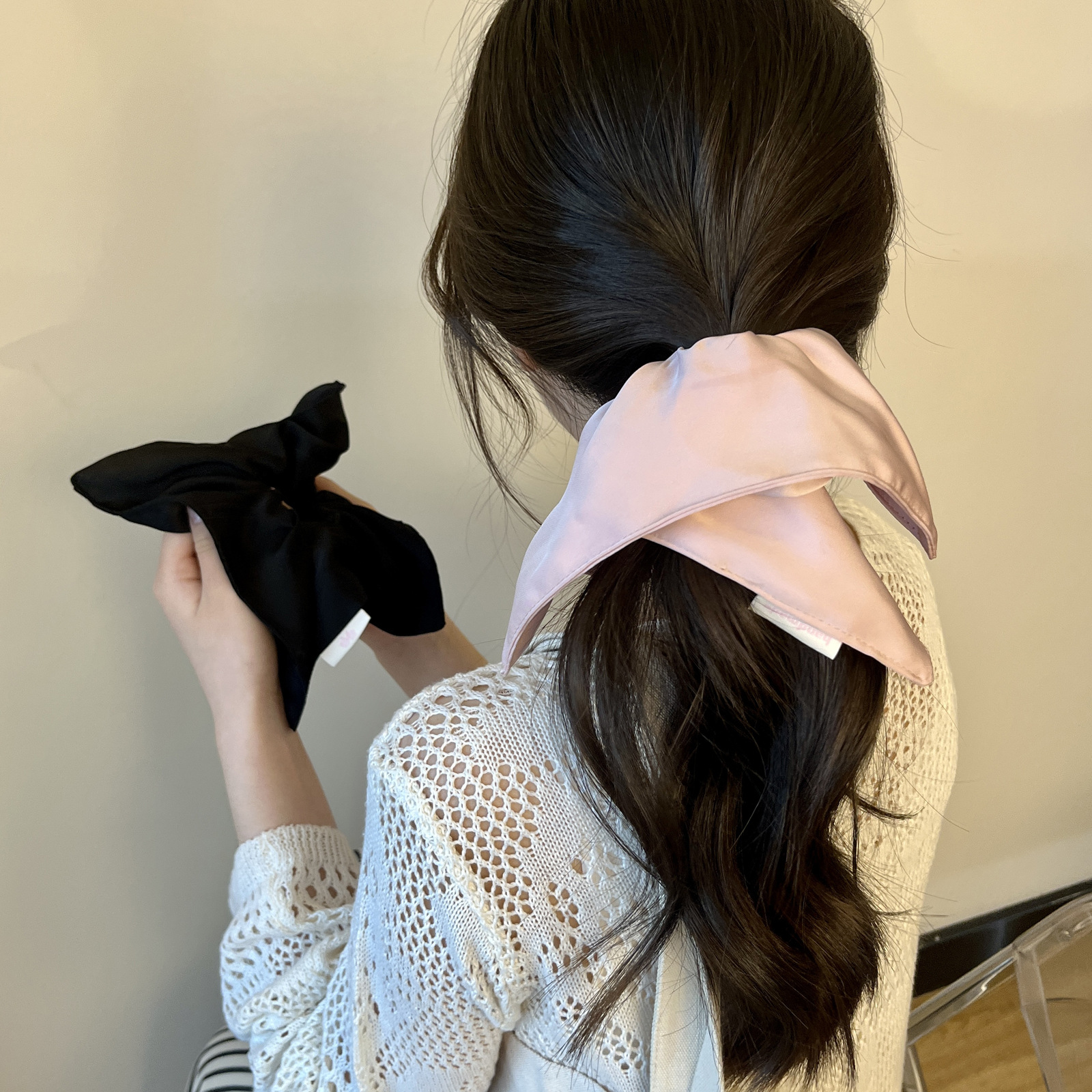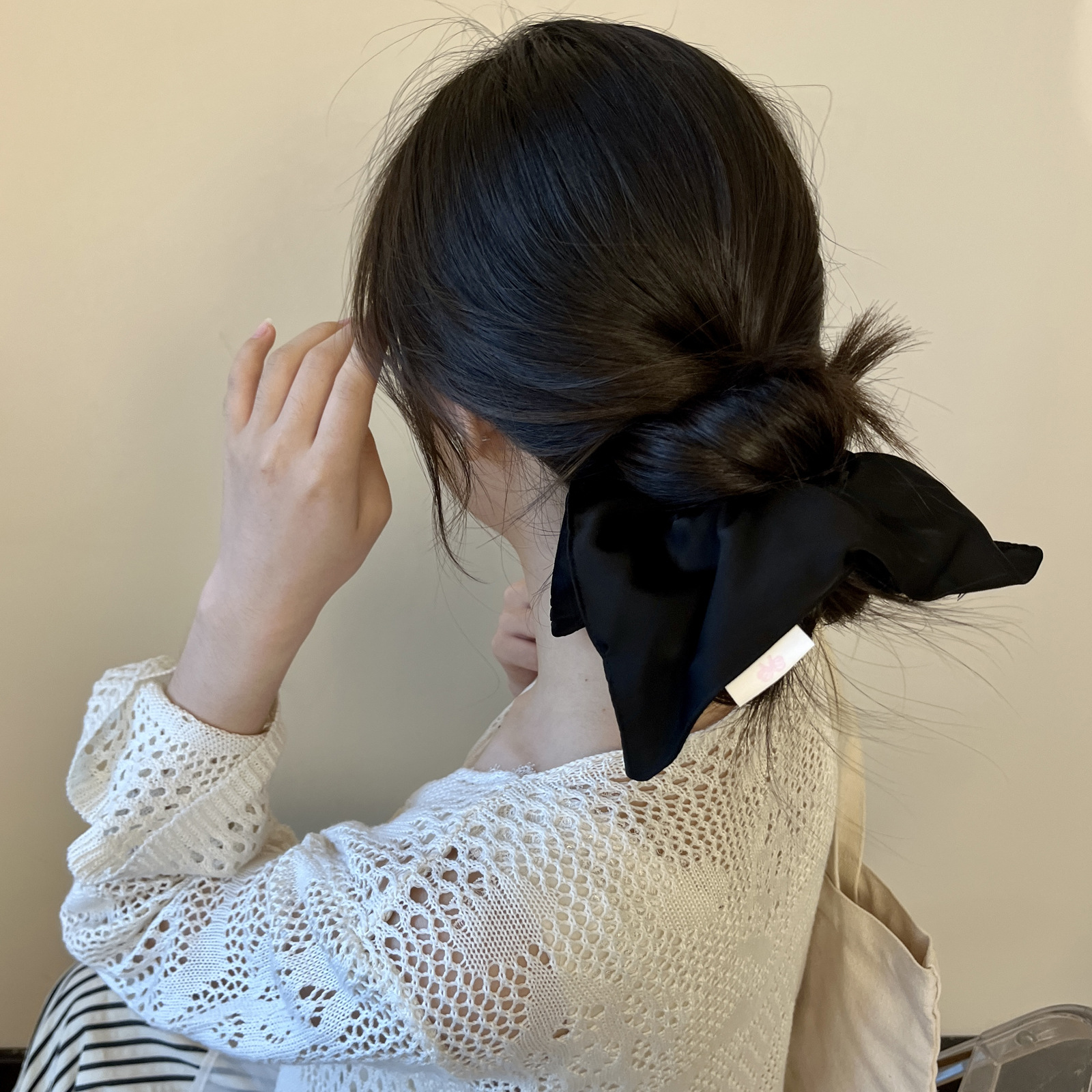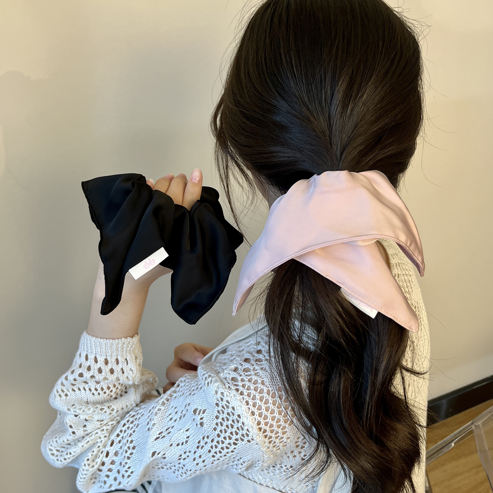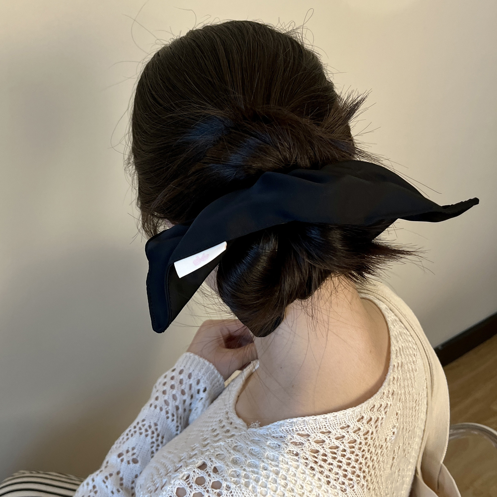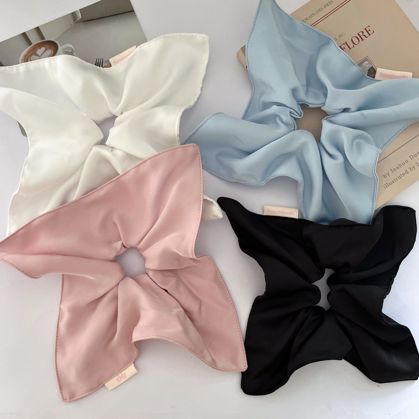 white solid-color square hair tie