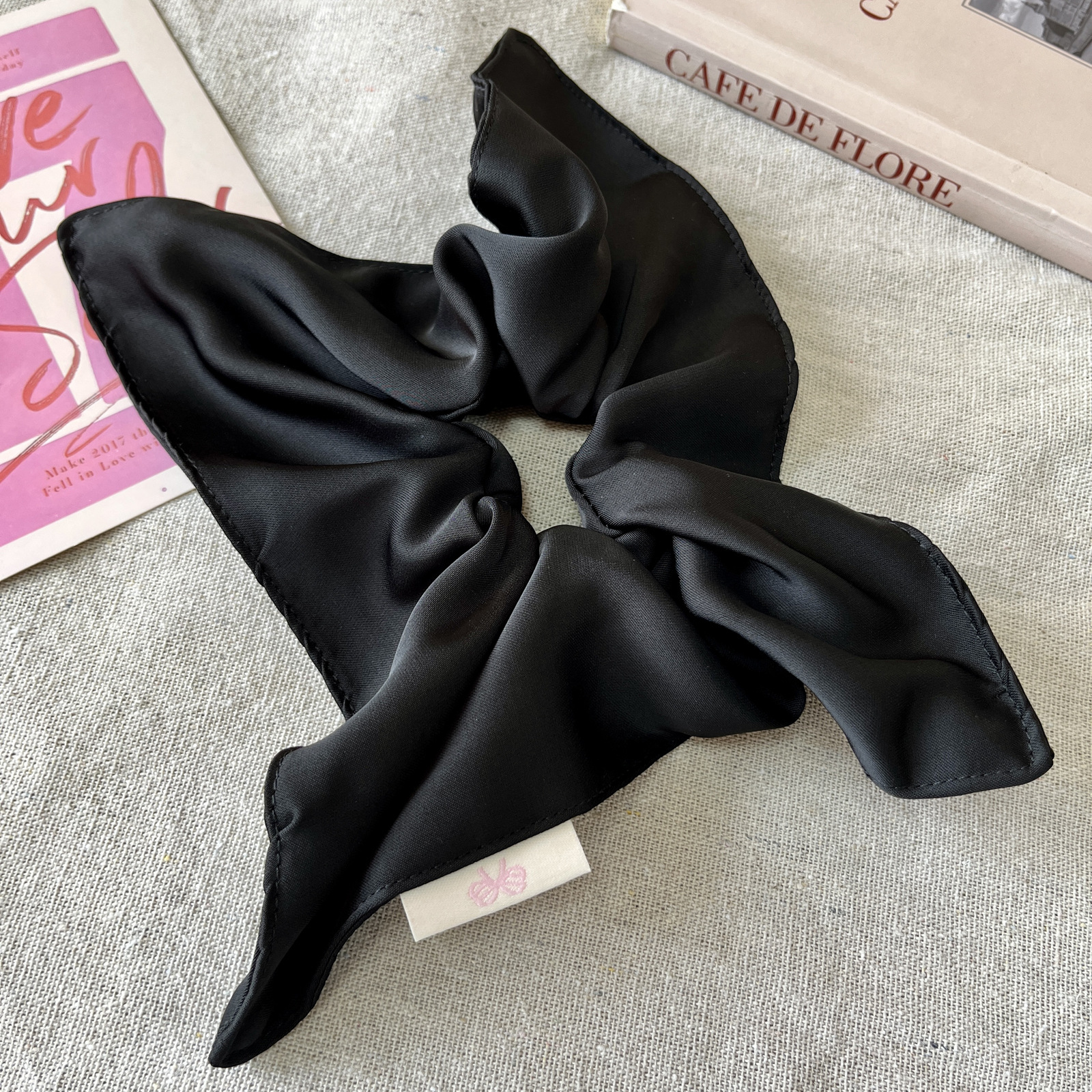 black-solid color square hair tie