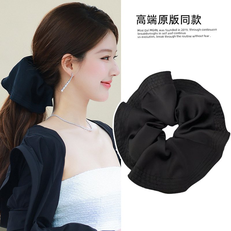 black extra-large ruffle hair tie