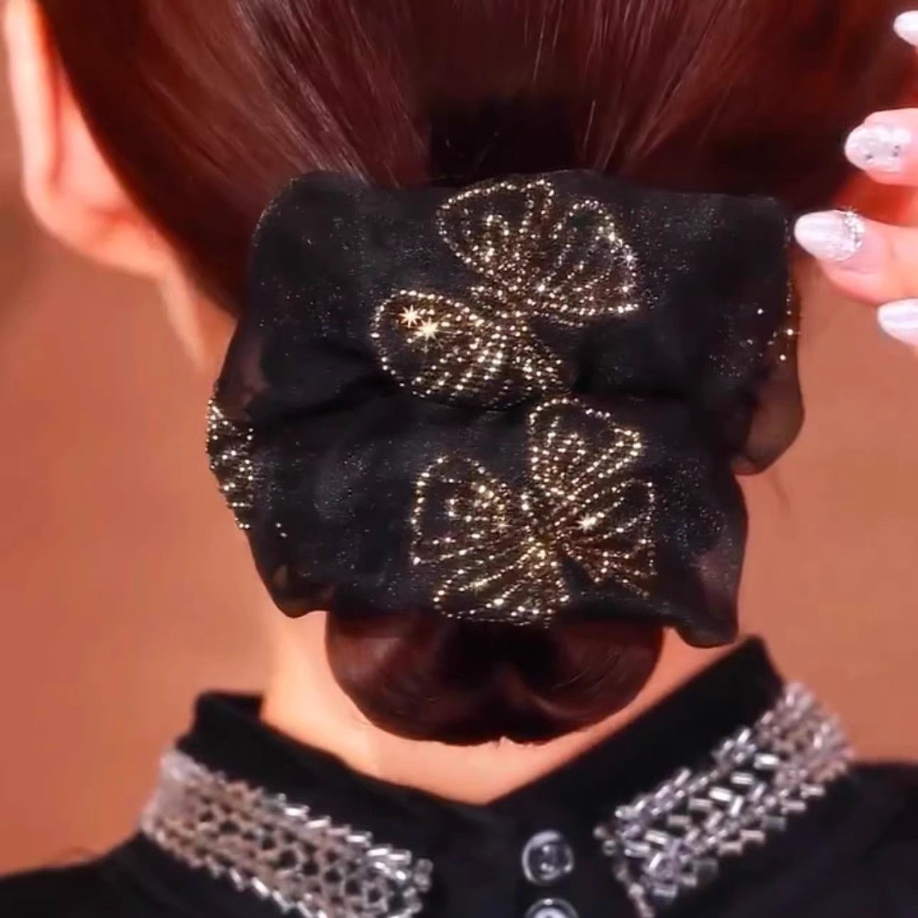 black butterfly hair tie