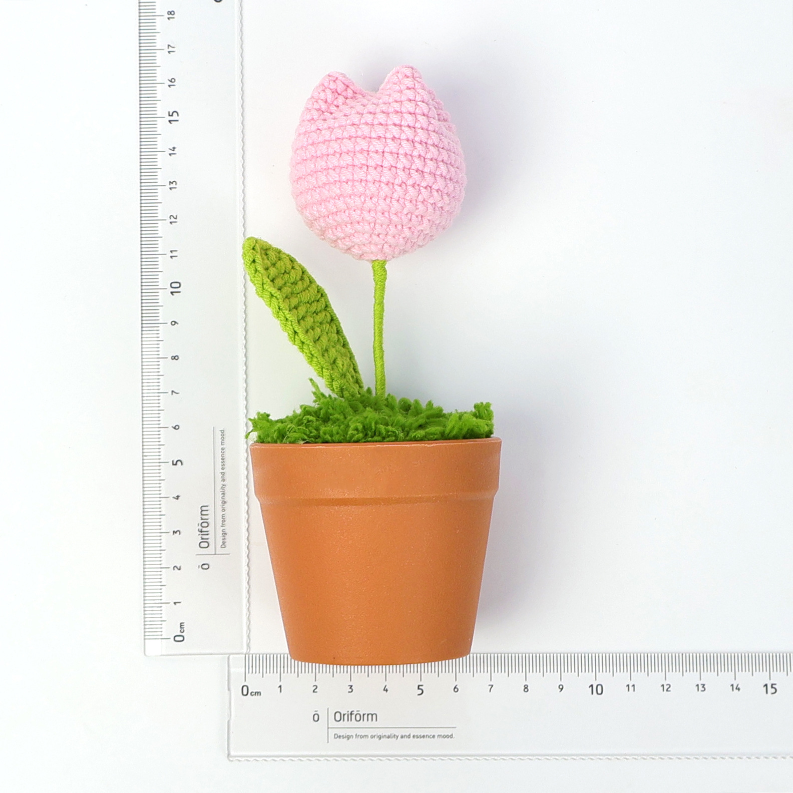 rose-pink plump tulip potted plant (brown pot)