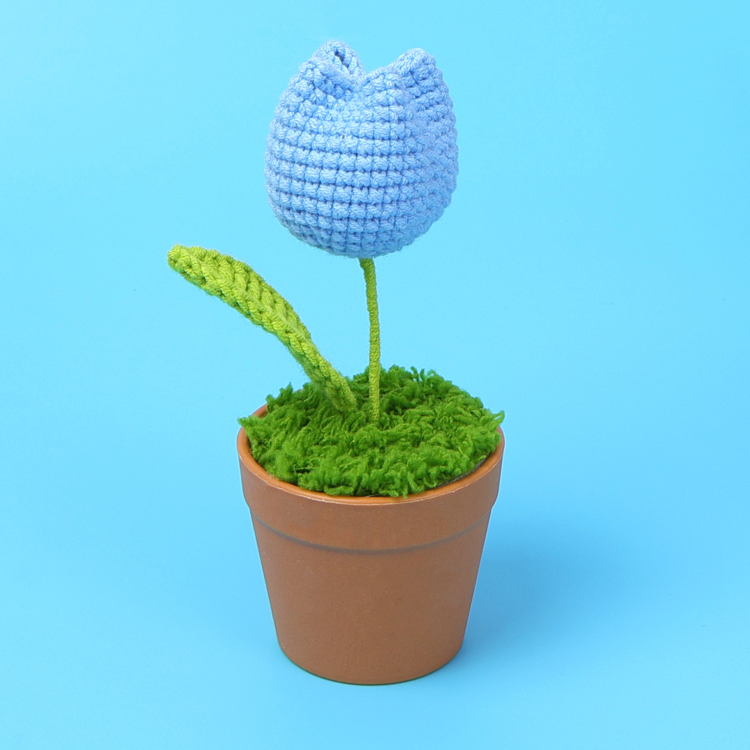 blue plump tulip potted plant (brown pot)