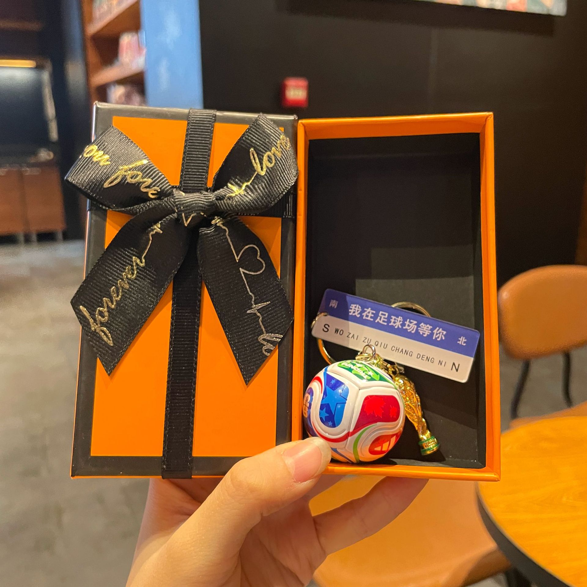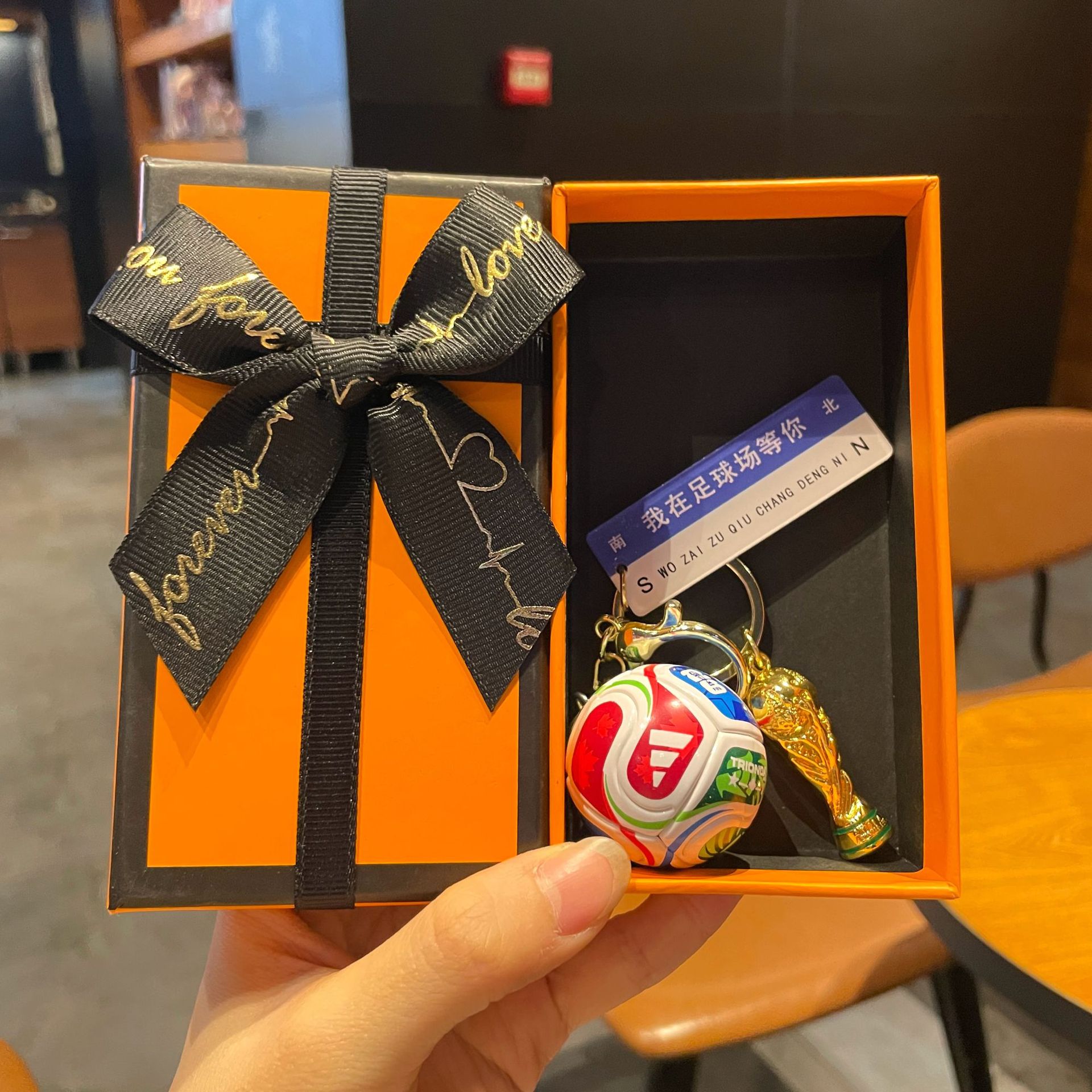 large size trophy + horoscope buckle + world cup football + i'm waiting for you at the stadium + orange large size gift box + gift bag