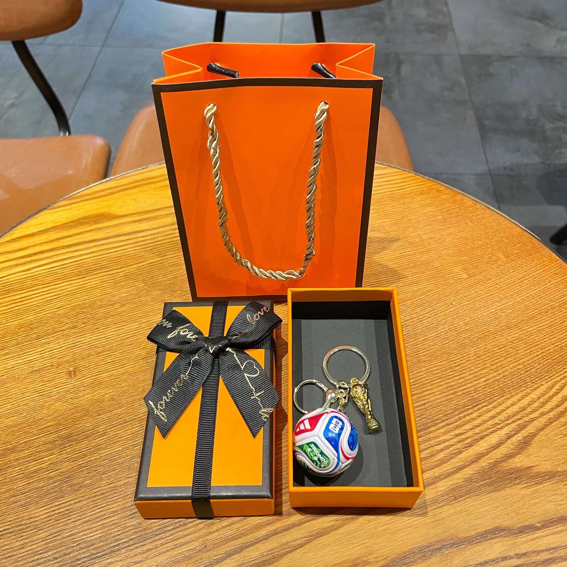 small trophy + horoscope buckle + world cup football + orange large size gift box + gift bag