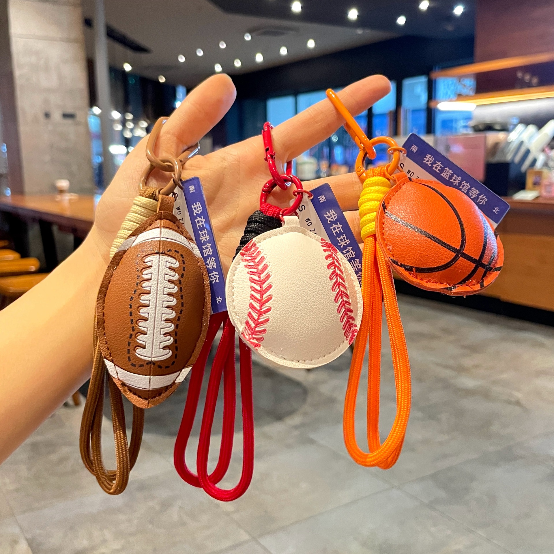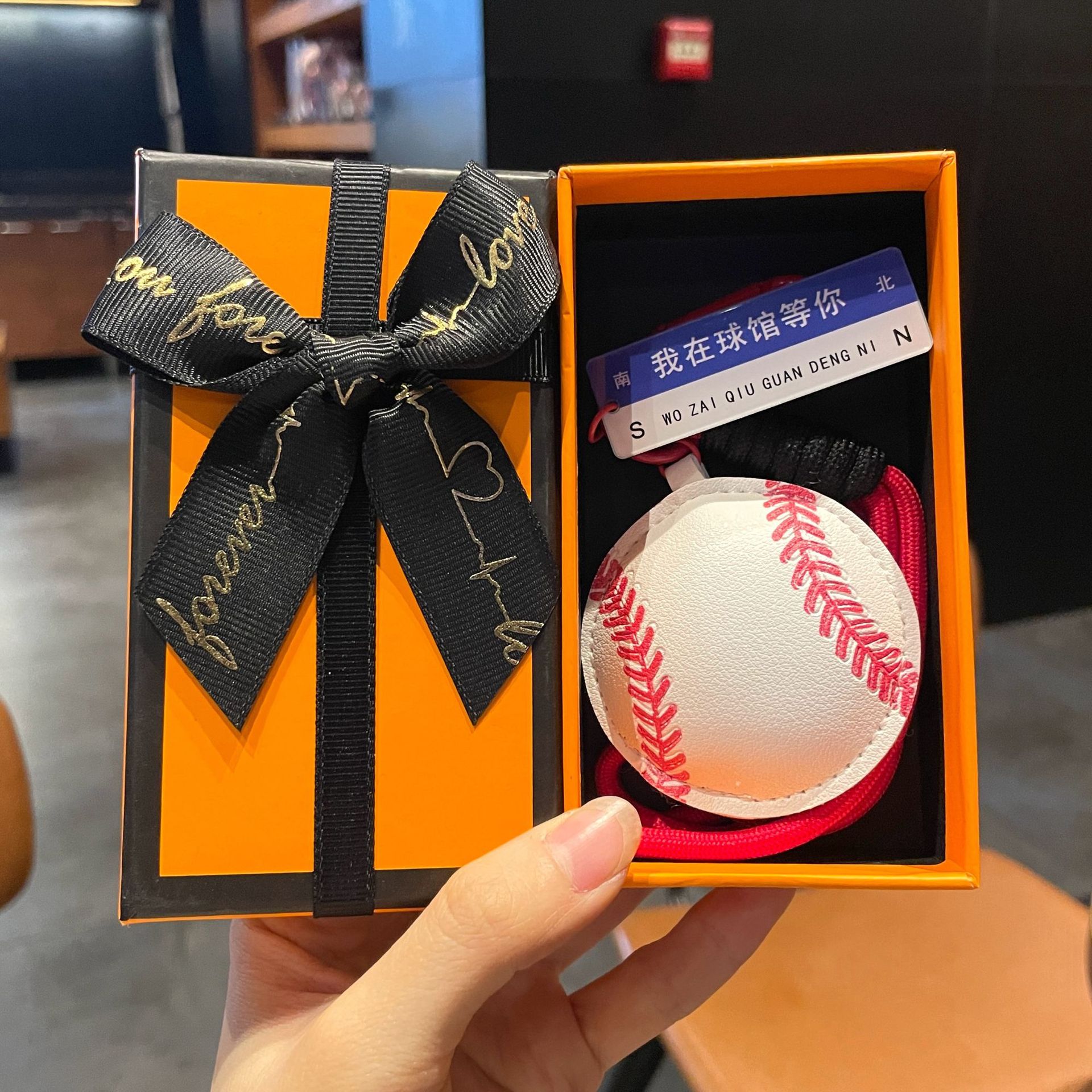 leather sports pendant-baseball + orange gift box + gift bag