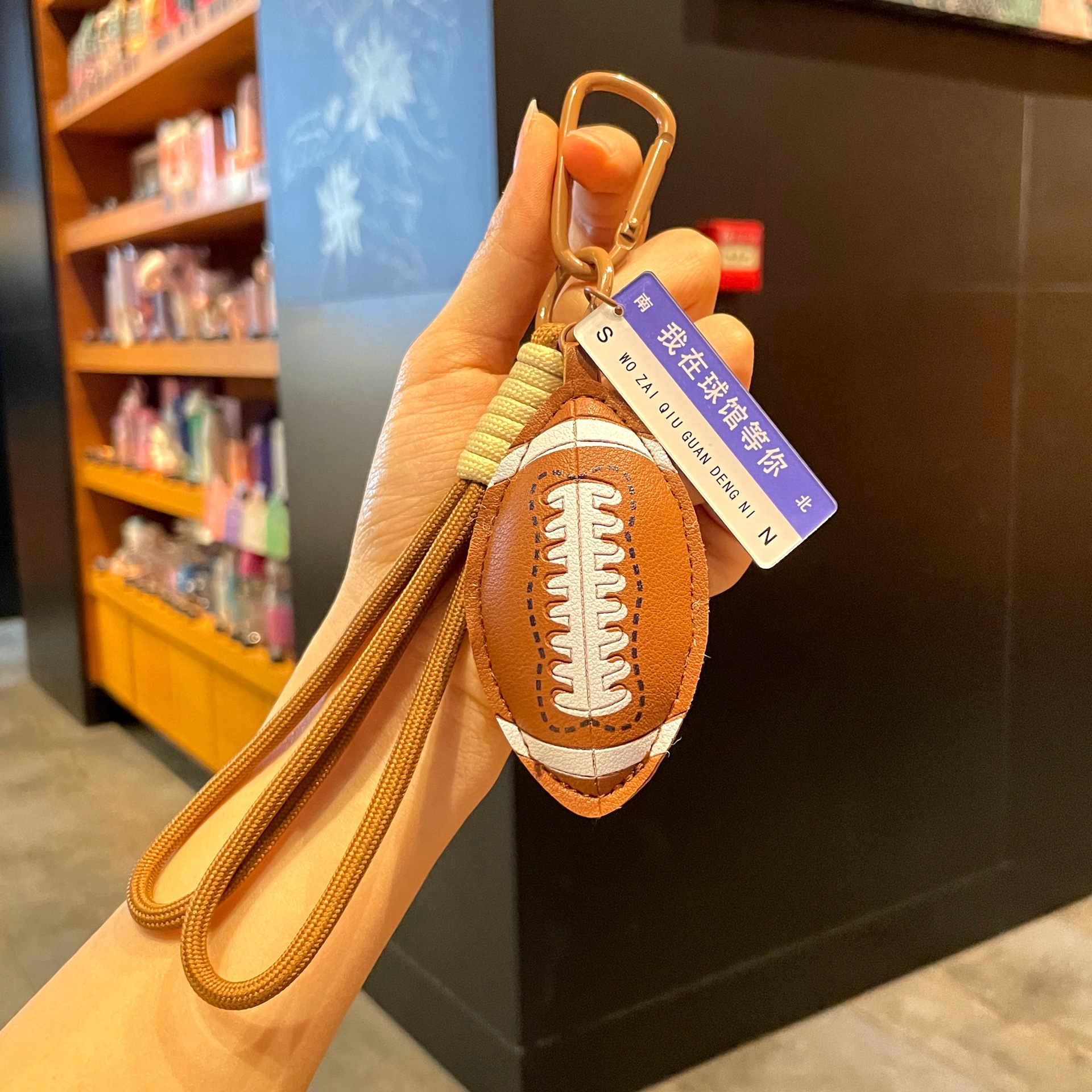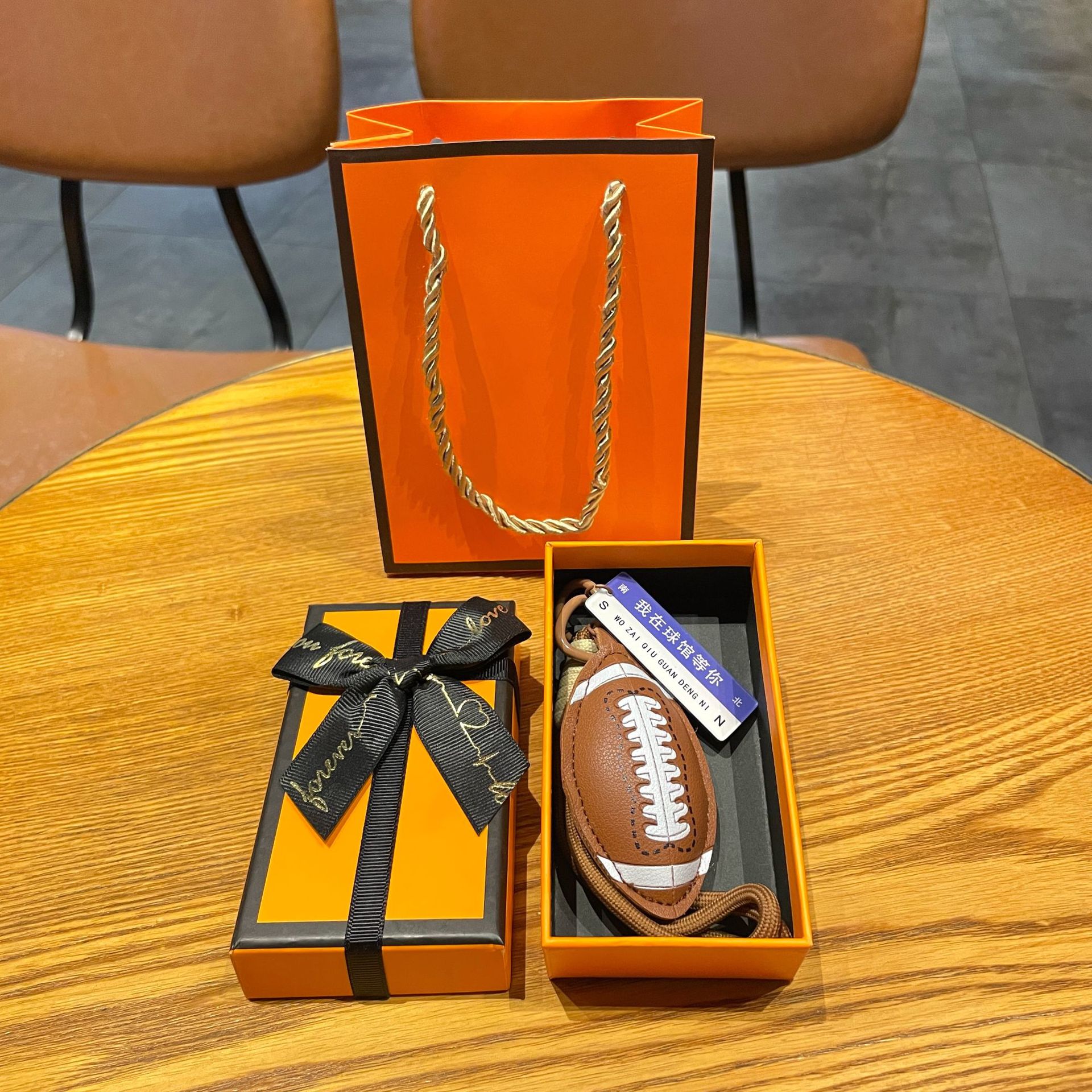 leather sports pendant-rugby + orange gift box + gift bag