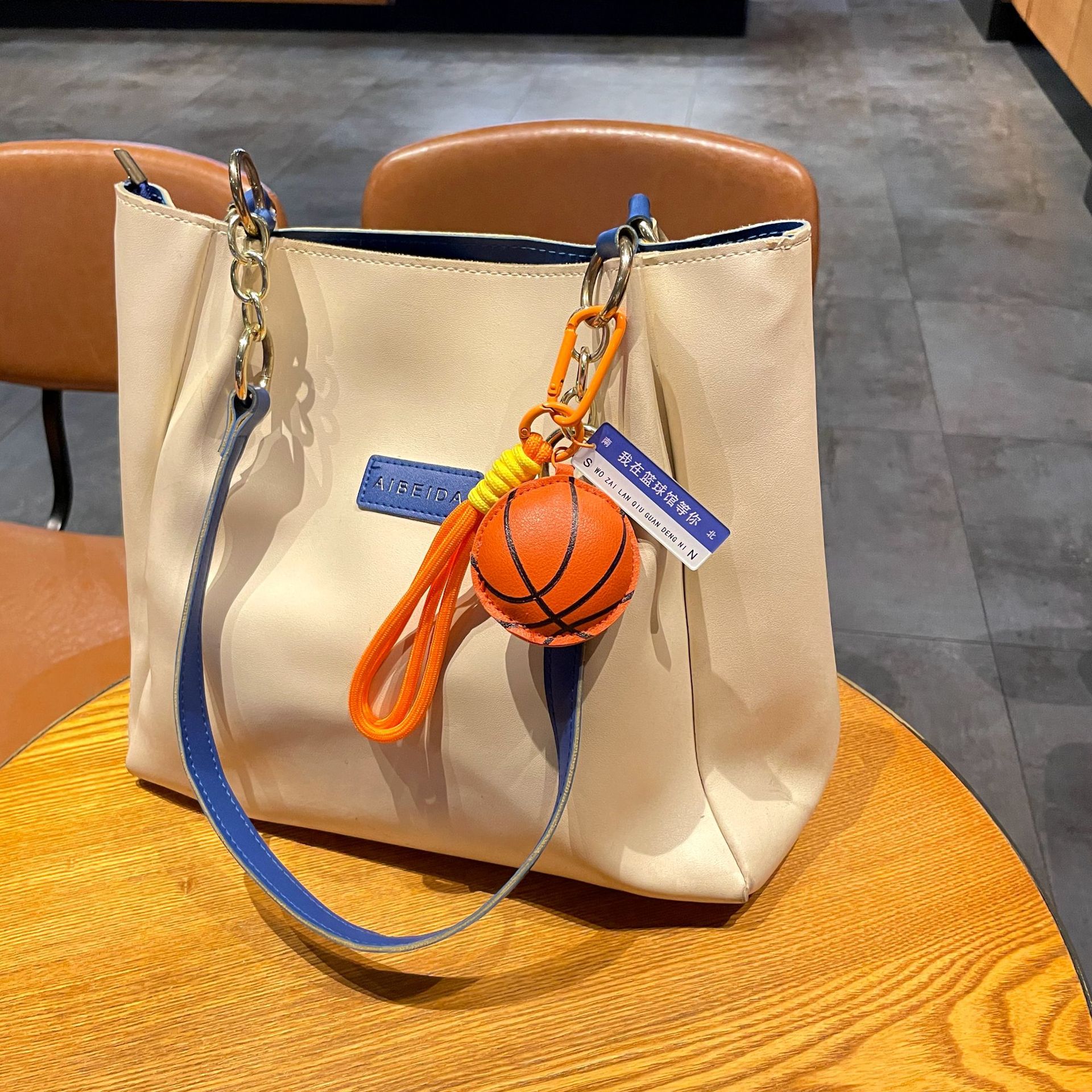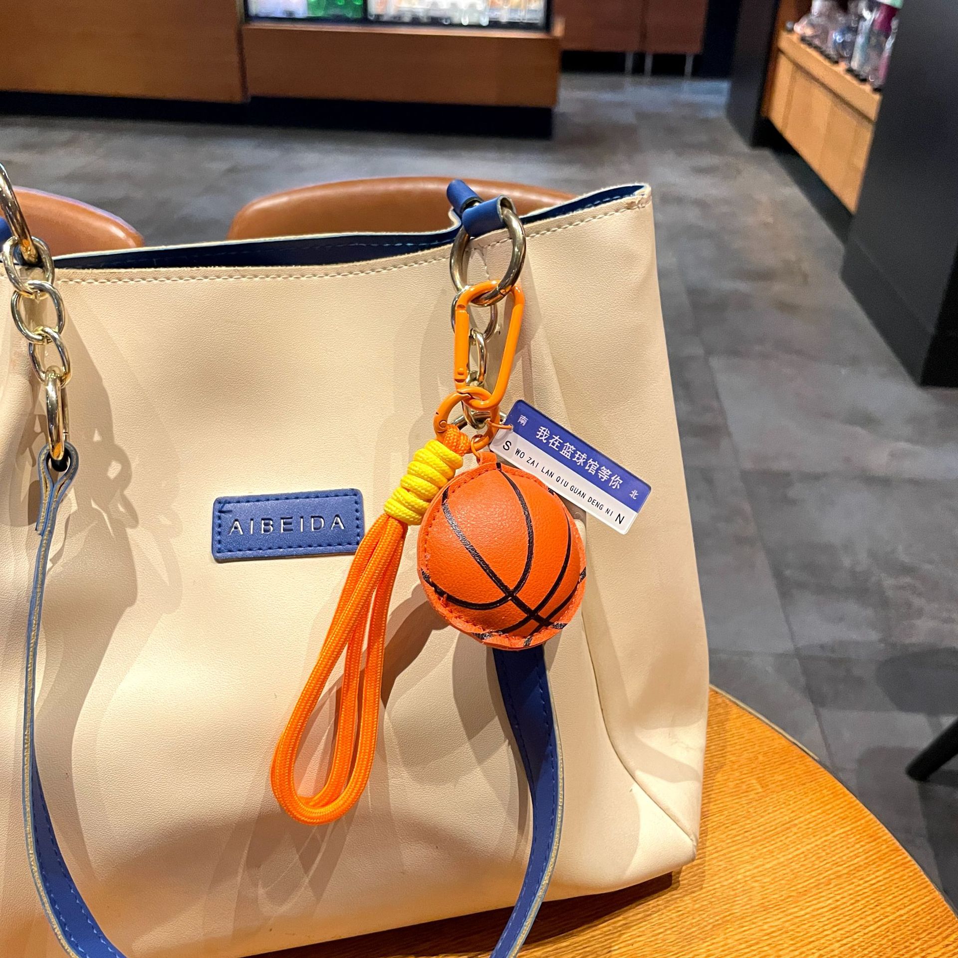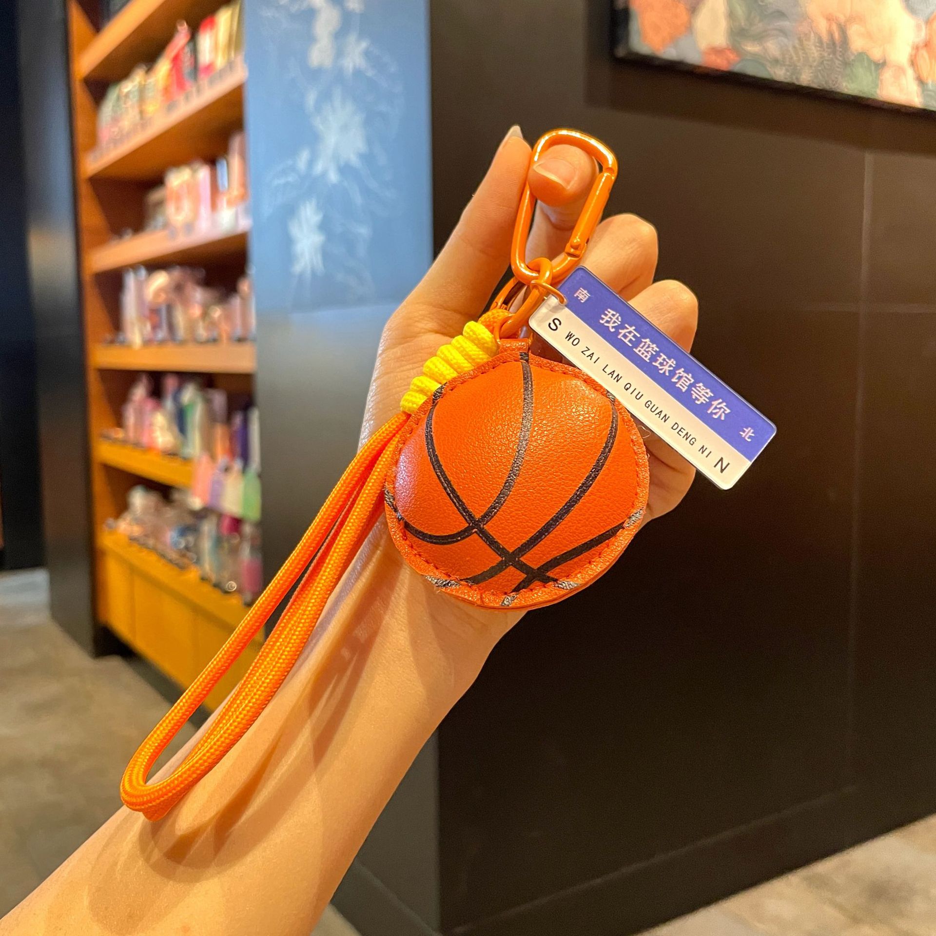 leather sports pendant-basketball + orange gift box + gift bag