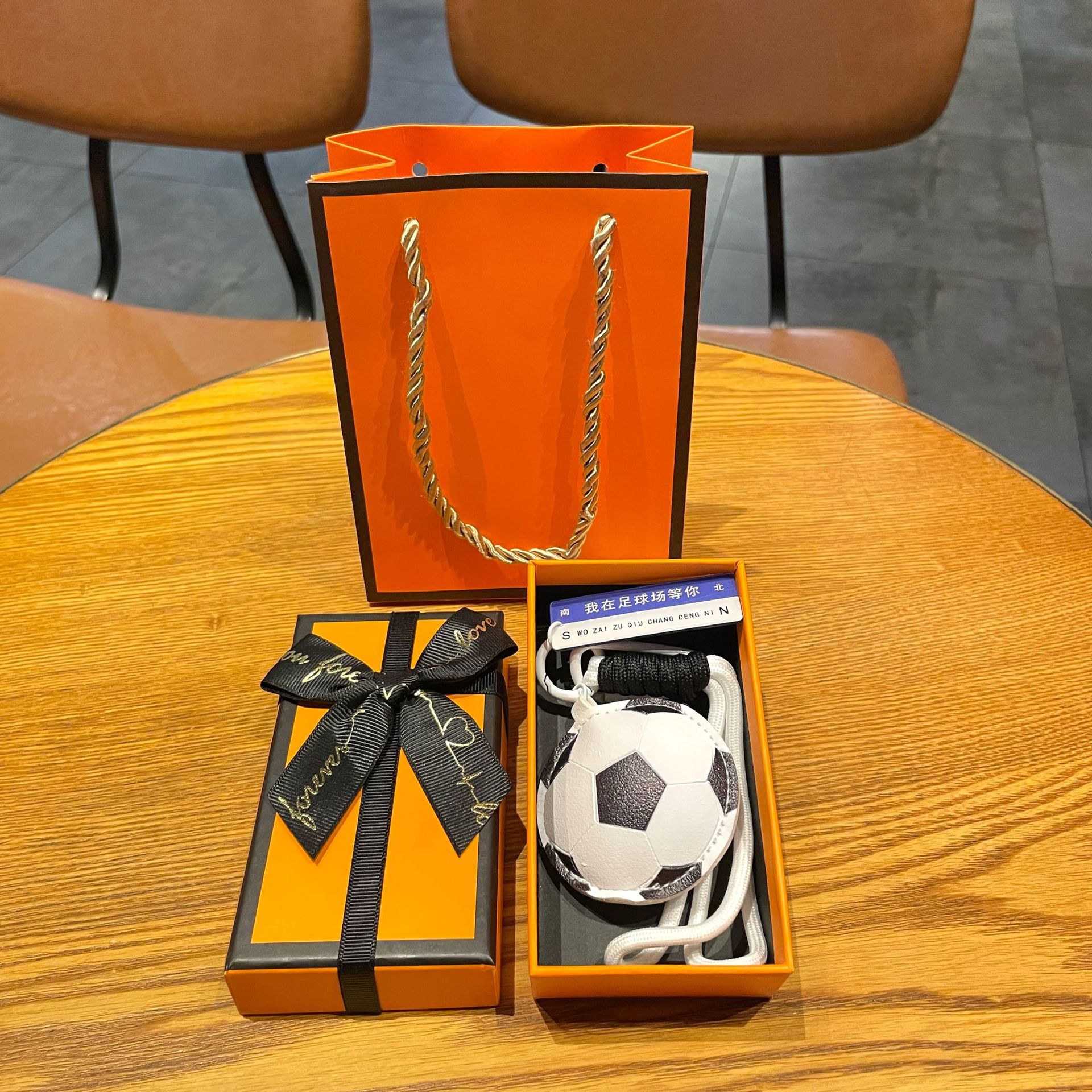 leather sports pendant-soccer ball + orange gift box + gift bag