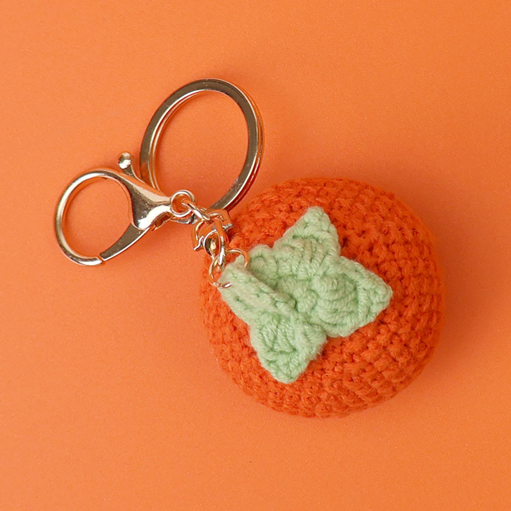 crocheted orange persimmon keychain (lobster buckle)
