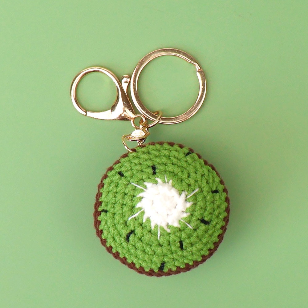 crocheted green kiwi keychain (lobster buckle)