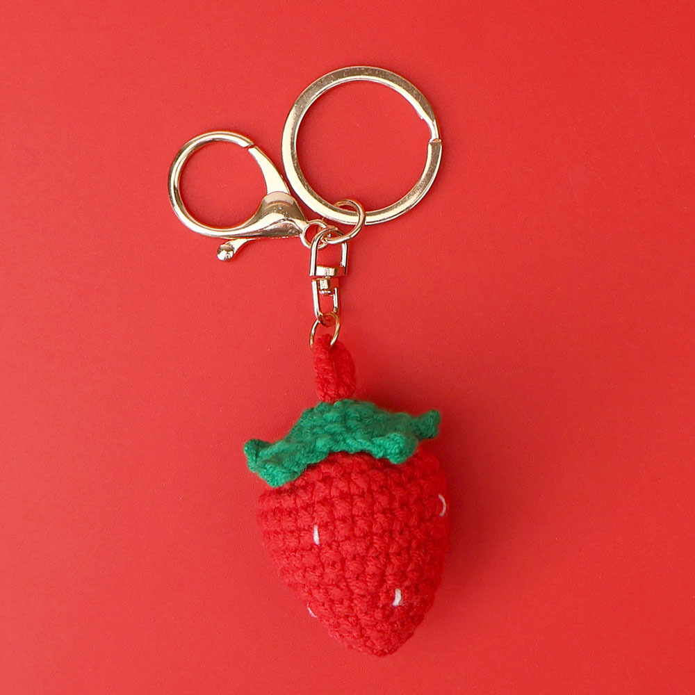 crocheted red strawberry keychain (lobster buckle)