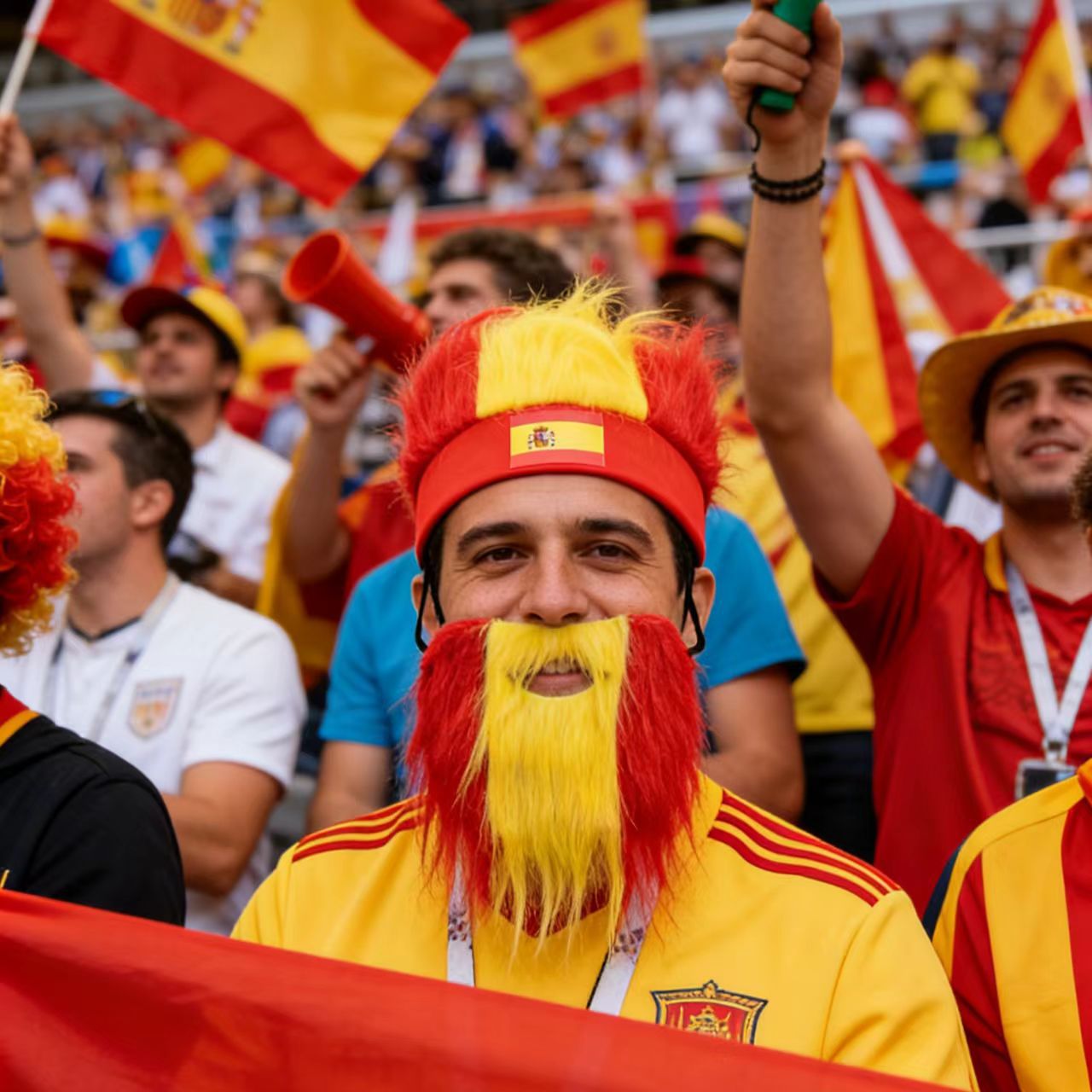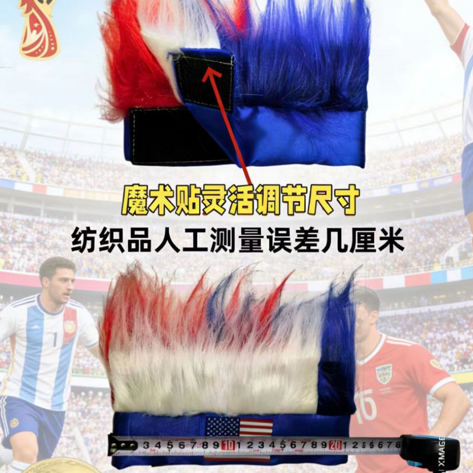 This wig cap is made with national flag colors, featuring a fluffy and full texture in red, blue, and white. It has a strong visual impact. Wearing it, you will be the most eye-catching presence both on and off the field, with a strong sense of atmosphere.