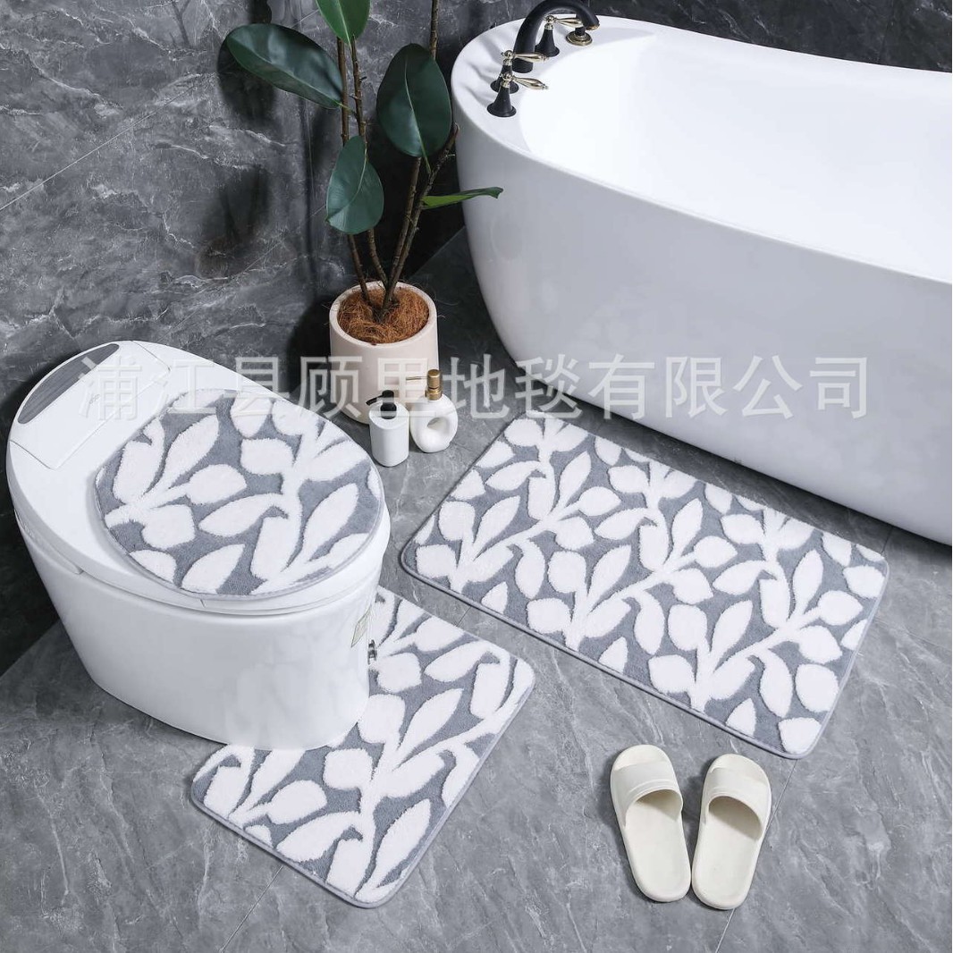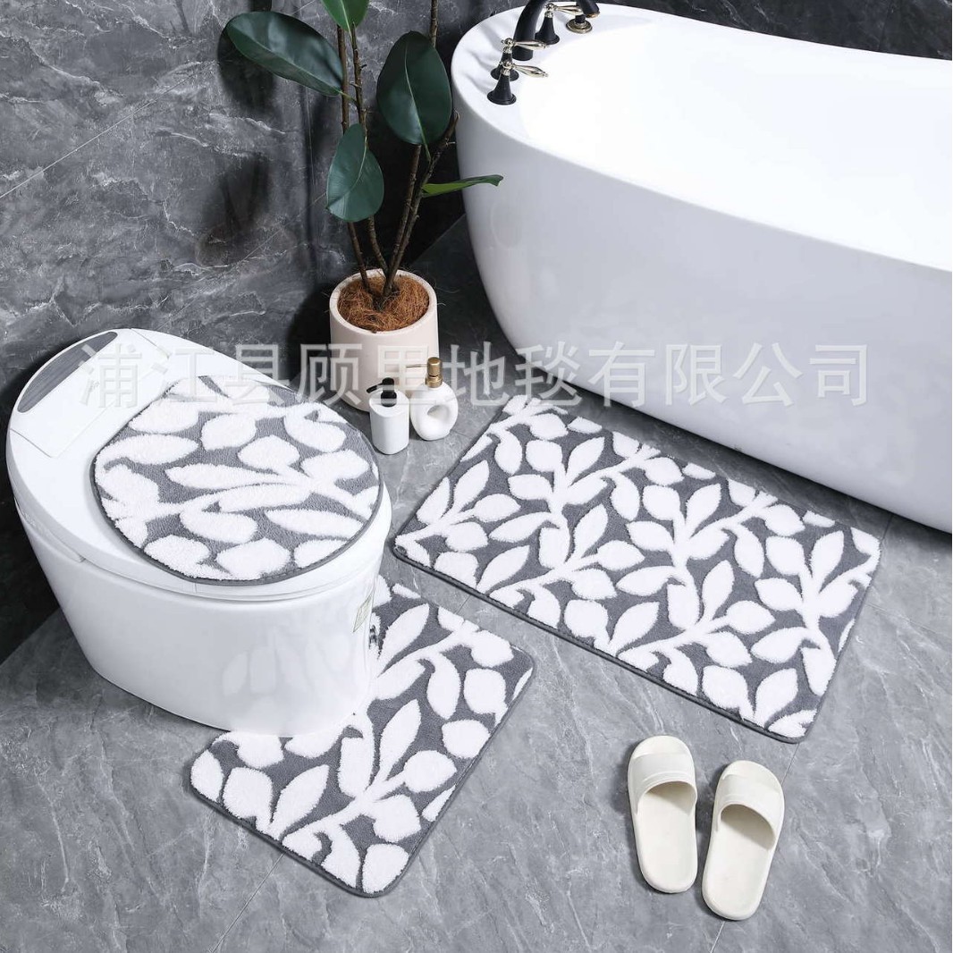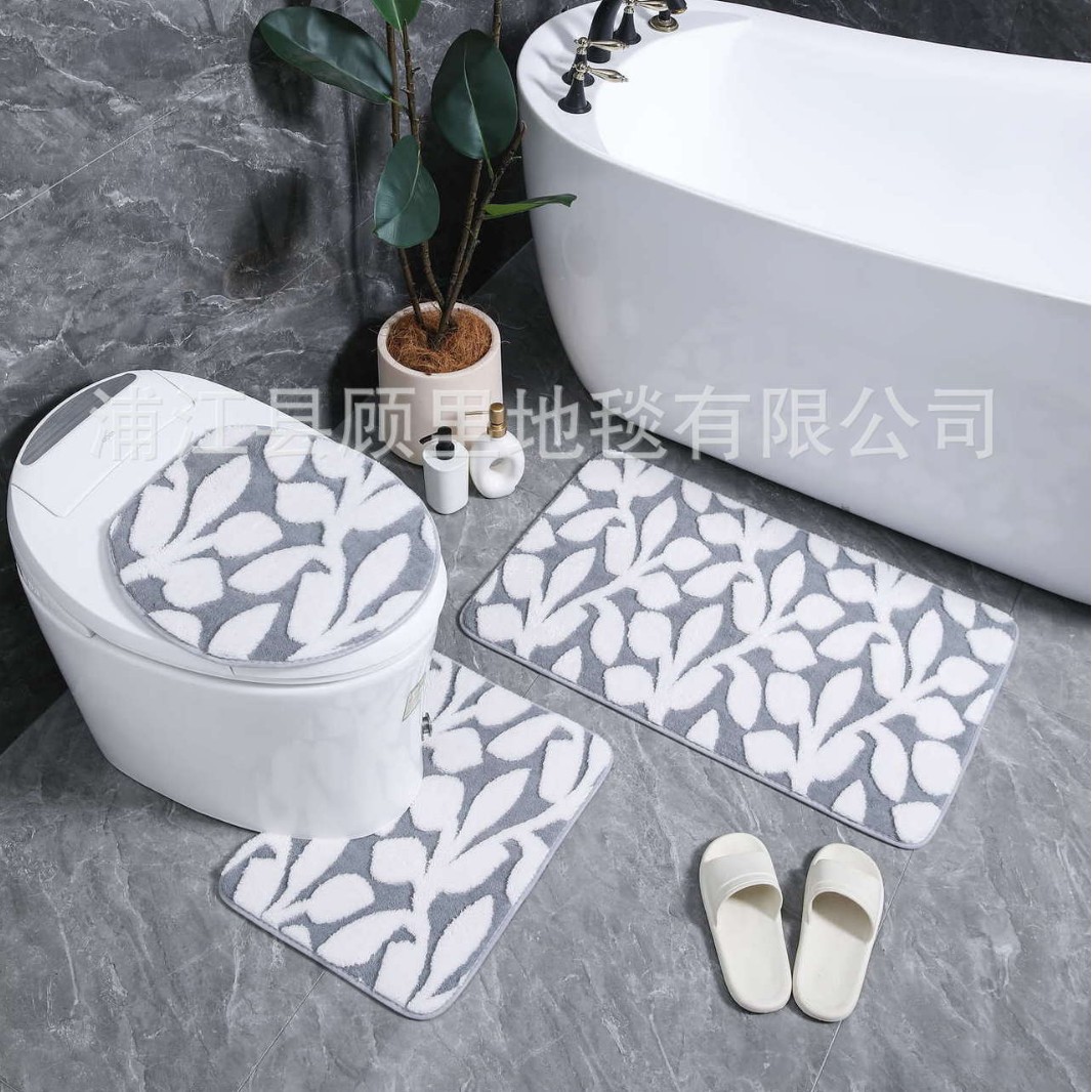 cross-border foreign trade cationic jacquard flower branch carpet three-piece set door mat water-absorbing non-slip floor mat household dirt-resistant foot pad